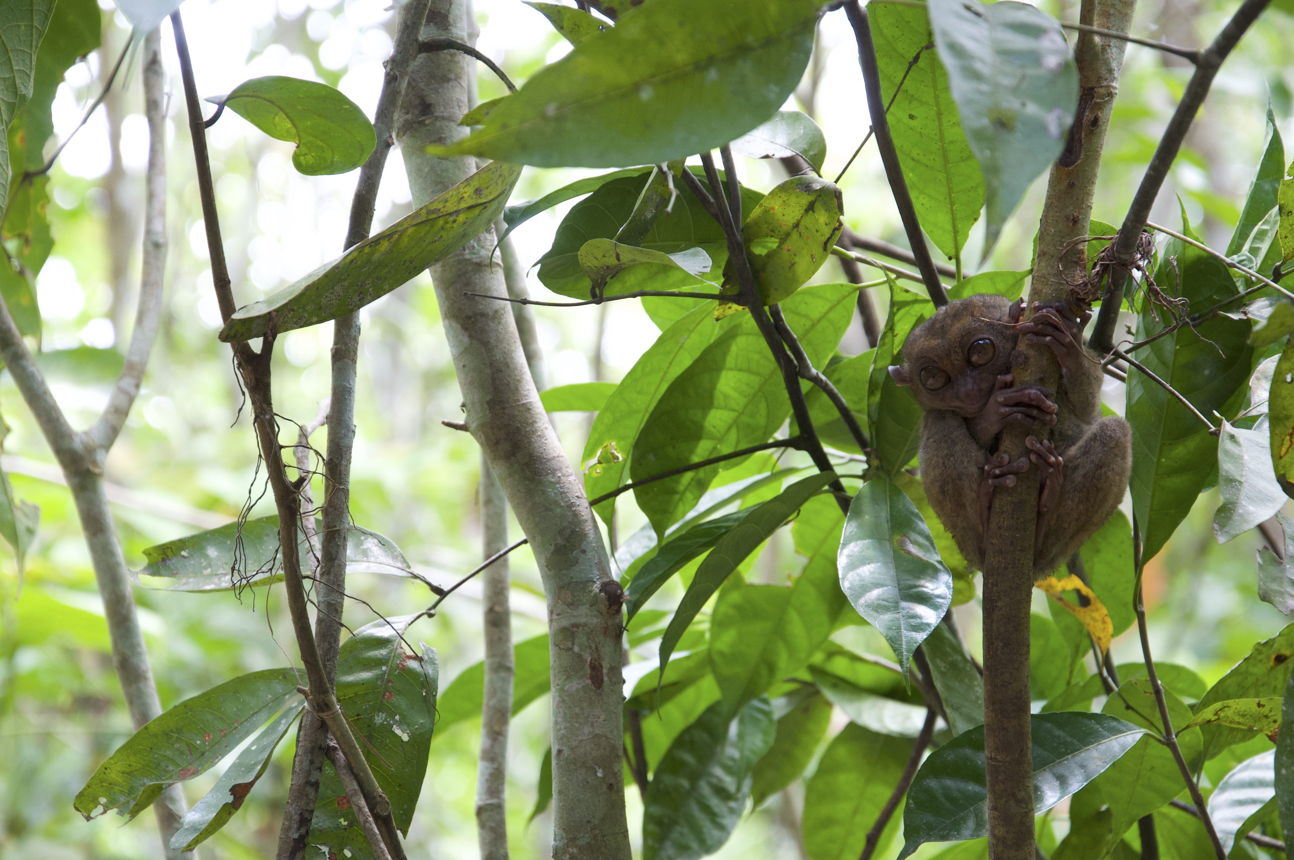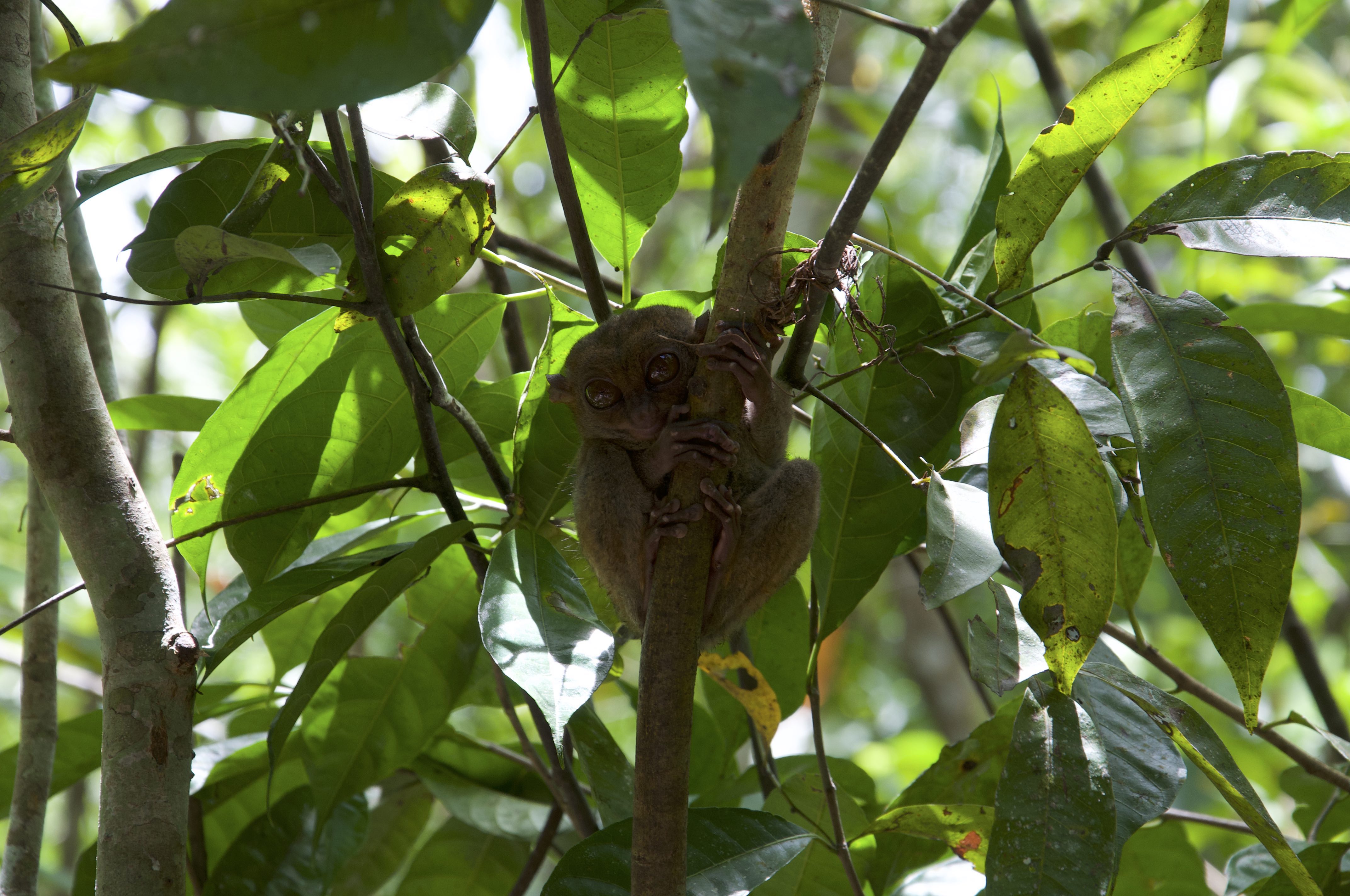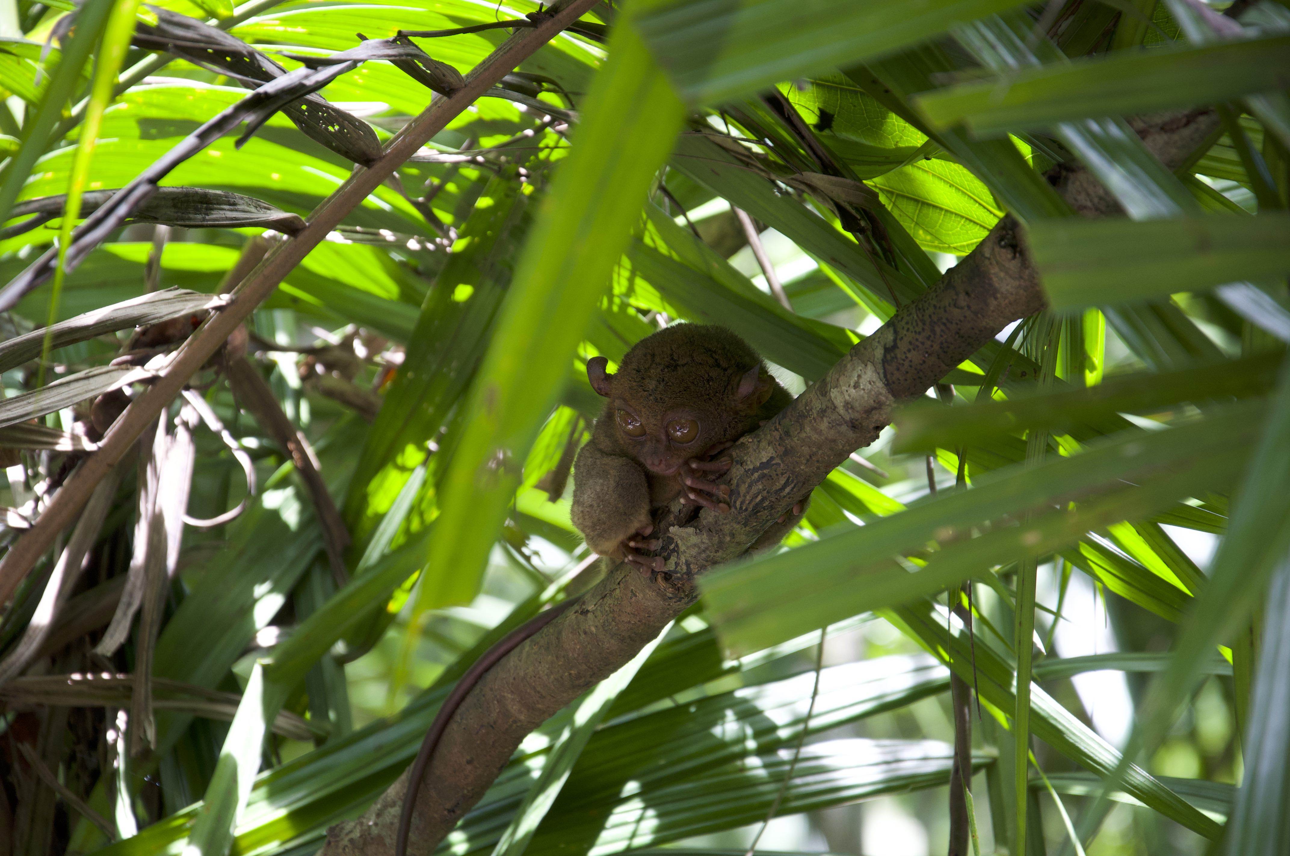 Anschließend besuchten wir das Tarsier Sanctuary – einen Bereich, wo die kleinsten Primaten geschützt leben können. Bei zu großem Stress (beispielsweise durch laute Geräusche) können sie sich selbst umbringen, indem sie ihren Kopf vor einen Baum hämmern. Dementsprechend gingen wir leise flüsternd durch die Anlage, wo die dortigen Angestellten auf die Stellen deuteten, wo Tarsiere waren. Sie sind wirklich knuffig anzusehen und würden vermutlich in eine Hand passen, so winzig sind sie.