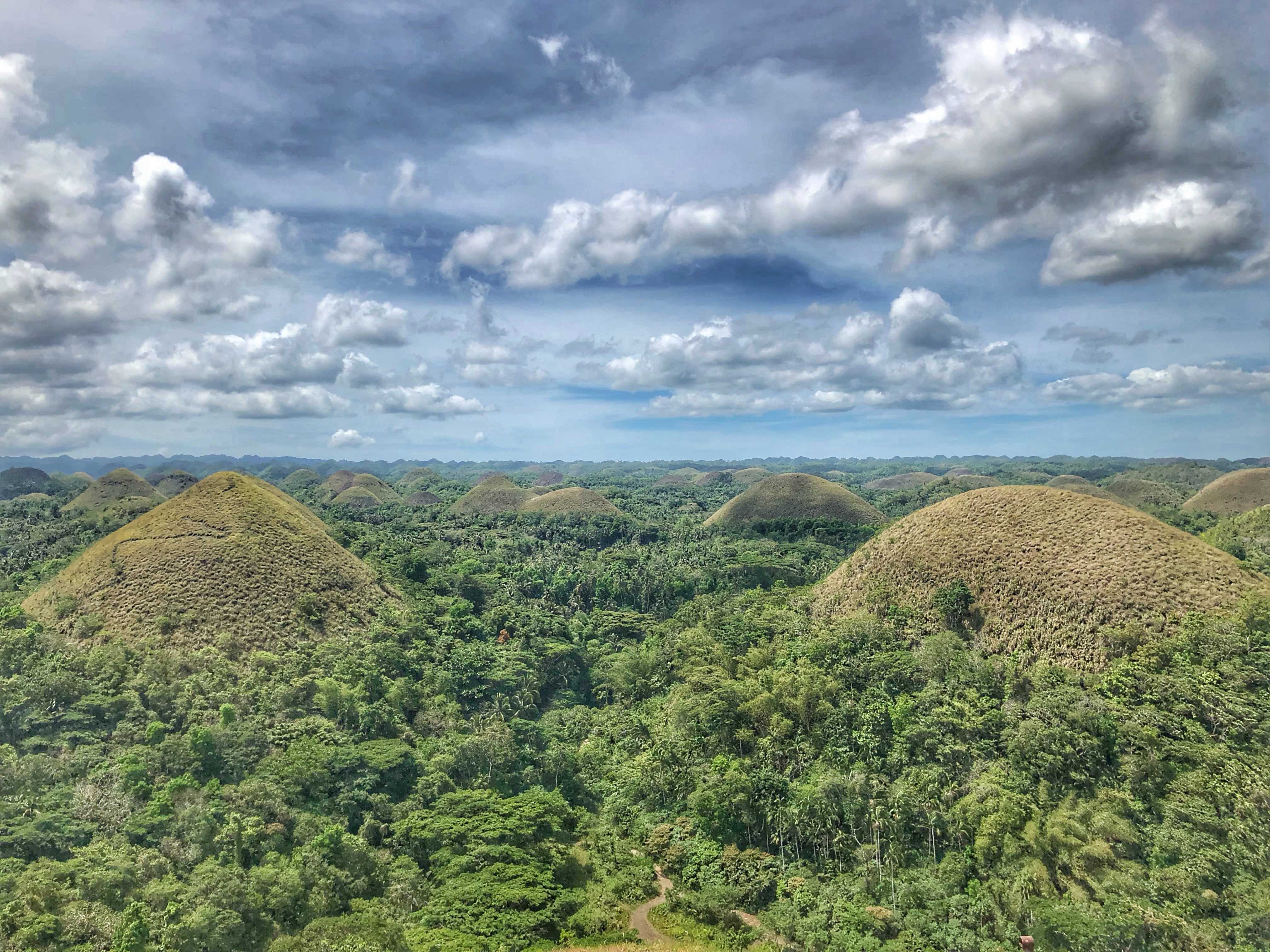 Dann ging es zu den „Chocolate Hills”. Diese waren nur teilweise braun und teilweise grün. Der weite Blick über die unzähligen Hügel war sehr schön.