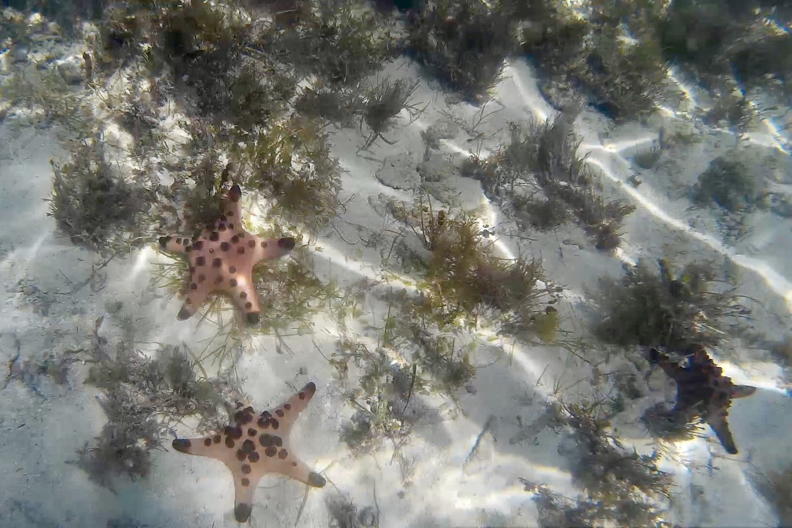 Zum ersten Mal konnten wir hier verschiedenen Fische und Seesterne beobachten und hatten von weiter draußen einen wunderbaren Blick auf diesen wunderschönen Strandabschnitt.