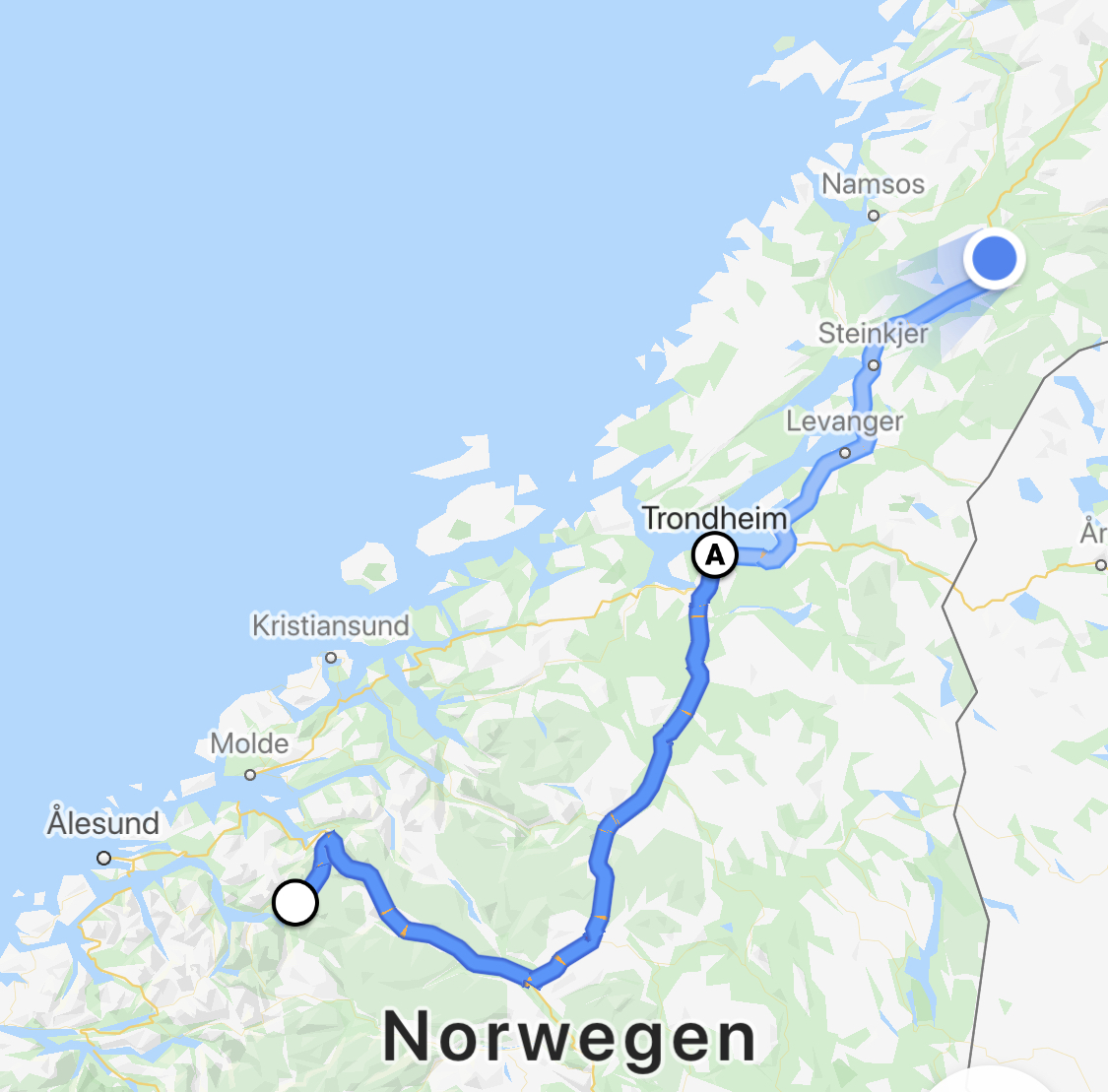 Weiter ging es Richtung Trondheim, dieses Mal nicht über Landschaftsrouten sondern hauptsächlich die E6. Das bedeutete ein etwas zügigeres Durchfahren und „nur normal schöne“ Landschaften entlang der Strecke 😉