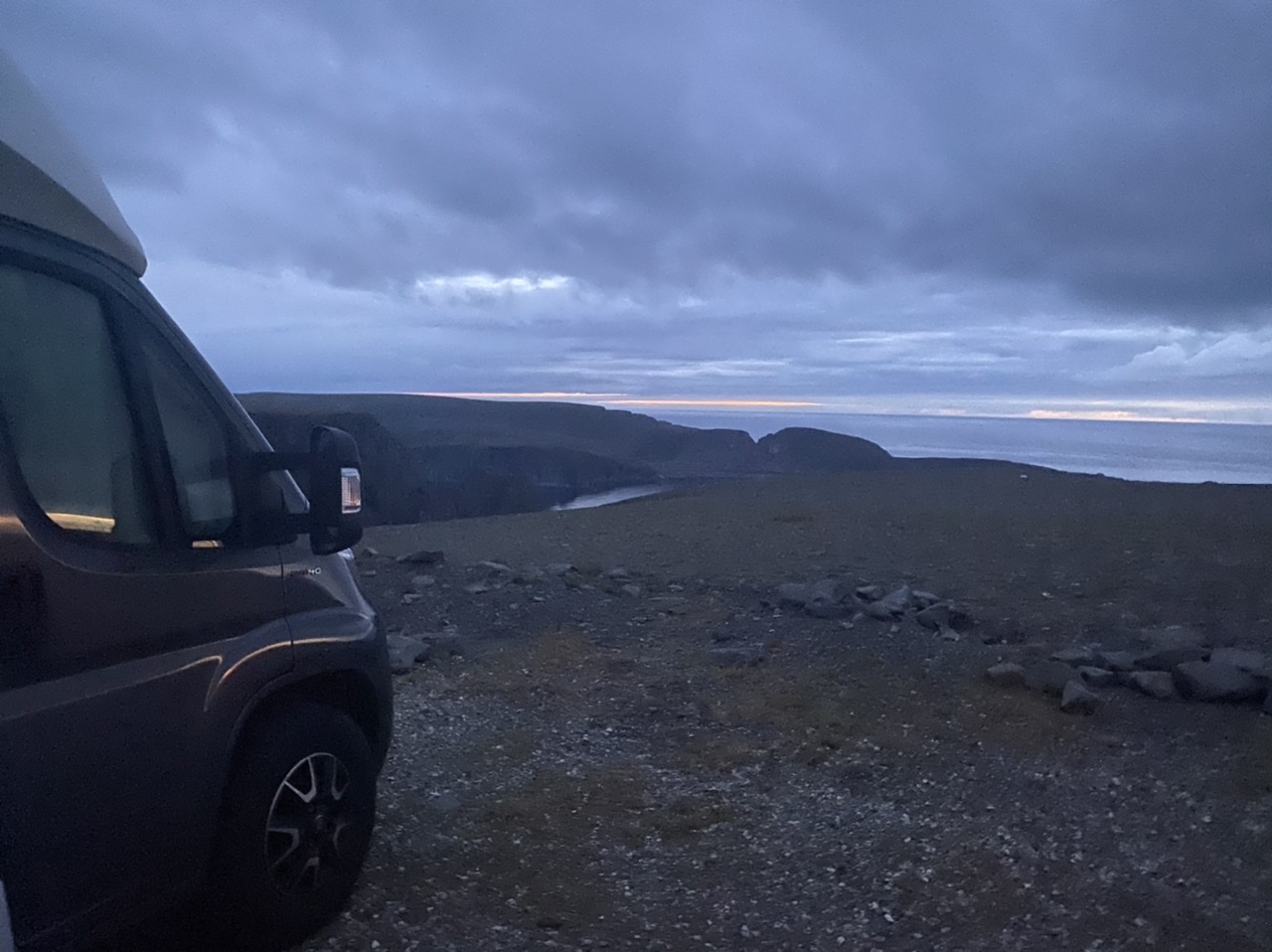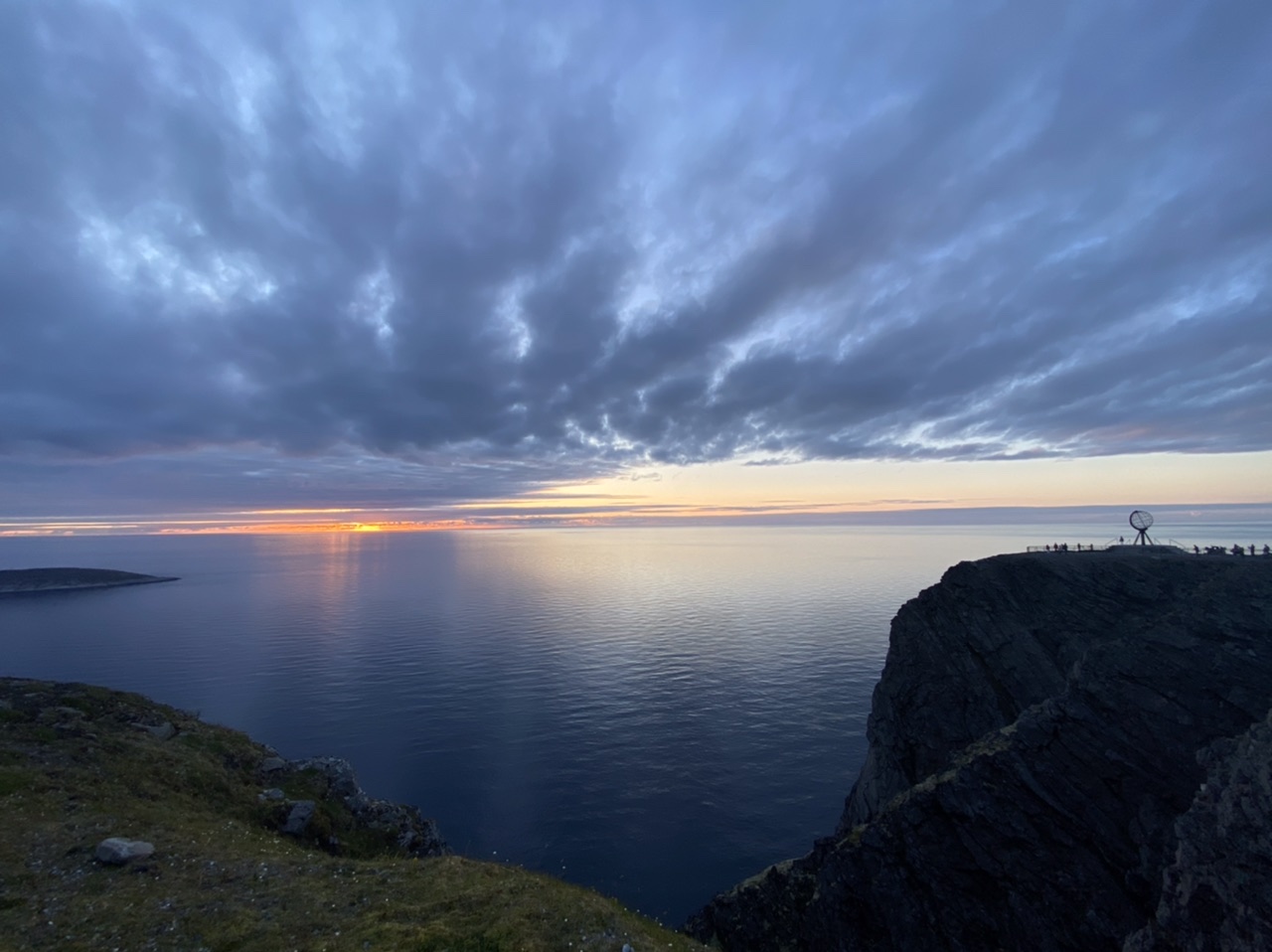 Gegen 20 Uhr kamen wir am Nordkapp an und konnten noch die Atmosphäre der fast untergehenden Sonne einfangen. Spontan entschieden wir uns, genau hier auch zu übernachten. Nach Grillen und Anstoßen mit Fiege werden wir nun ins Bett gehen. Es ist 0:21 Uhr und die Sonne ist immer noch nicht ganz untergegangen, dafür ist es aber ganz schön kalt…