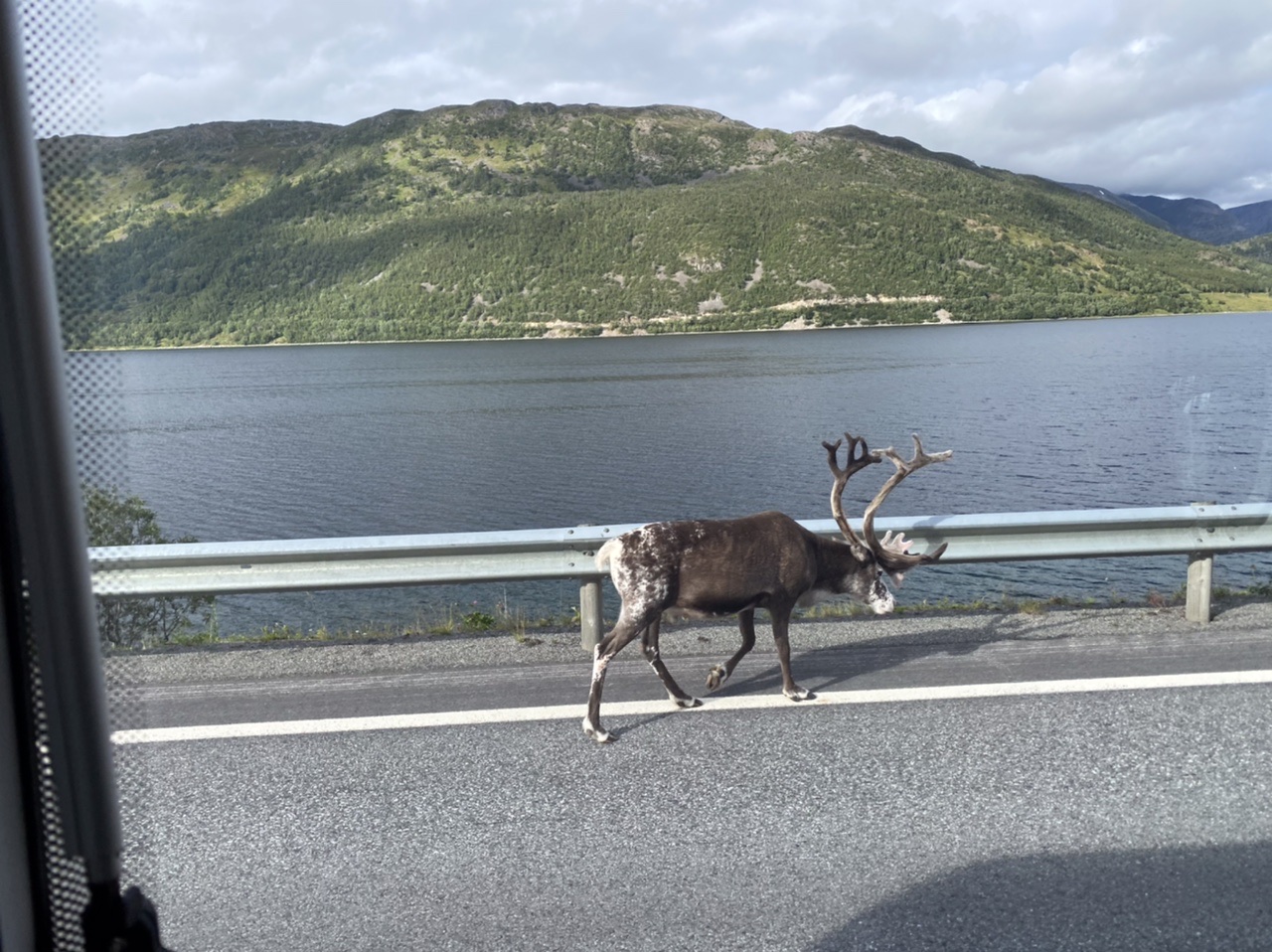 Auf dem Weg sahen wir heute nicht nur faszinierende Landschaften wie Berge, Flüsse und nebelverhangene Wälder, sondern auch viele Rentiere.