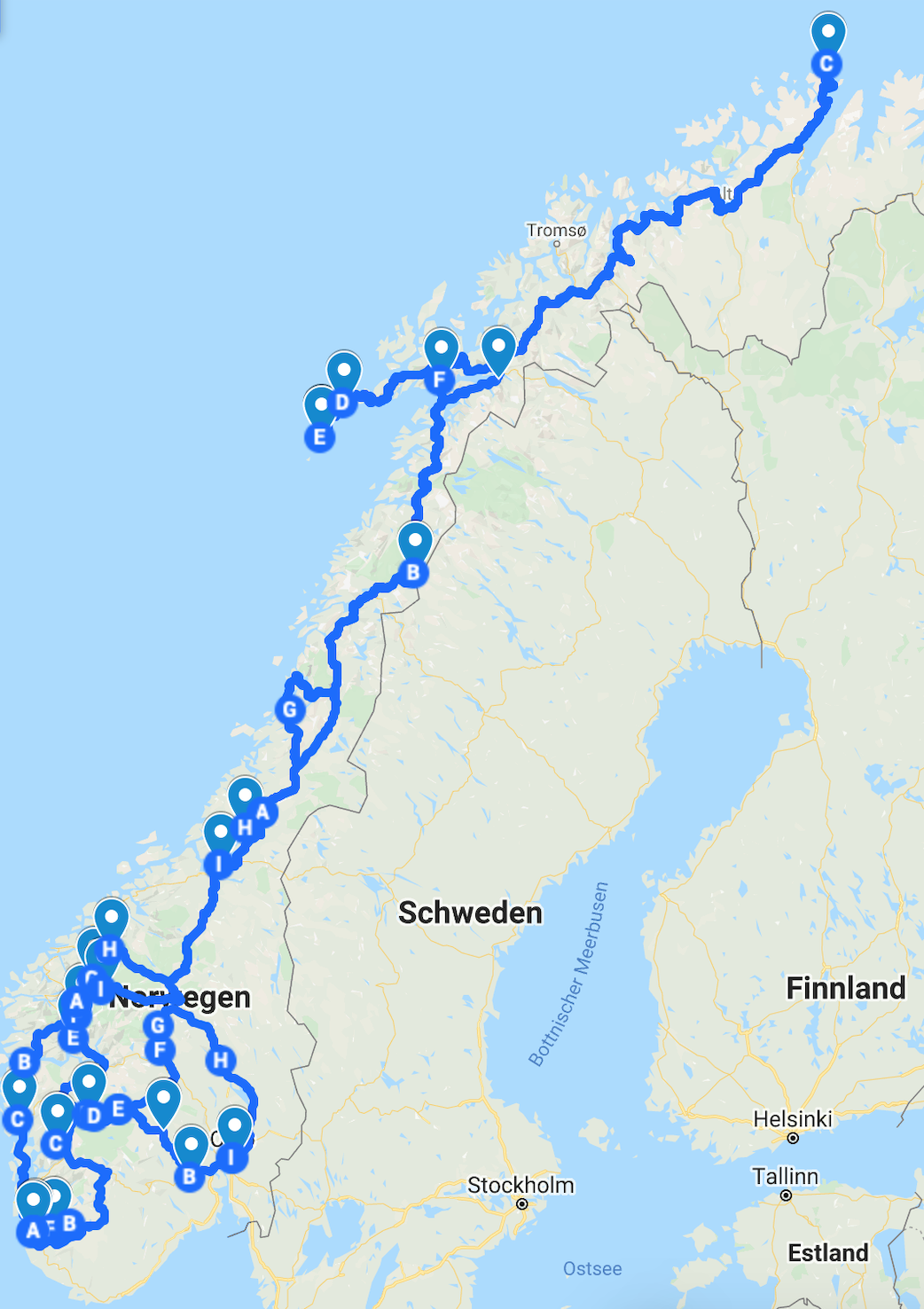 Norwegen und seine wunderschöne Natur hat uns sehr gut gefallen. So auch der dortige Umgang mit Camping und die zahlreichen kostenlosen Möglichkeiten, frei zu stehen und sich zu versorgen. Um Berge, Seen, Gletscher, und scheinbar unendliche Weiten (ohne Menschen) zu sehen, müssen wir anscheinend keine Fernreise machen.