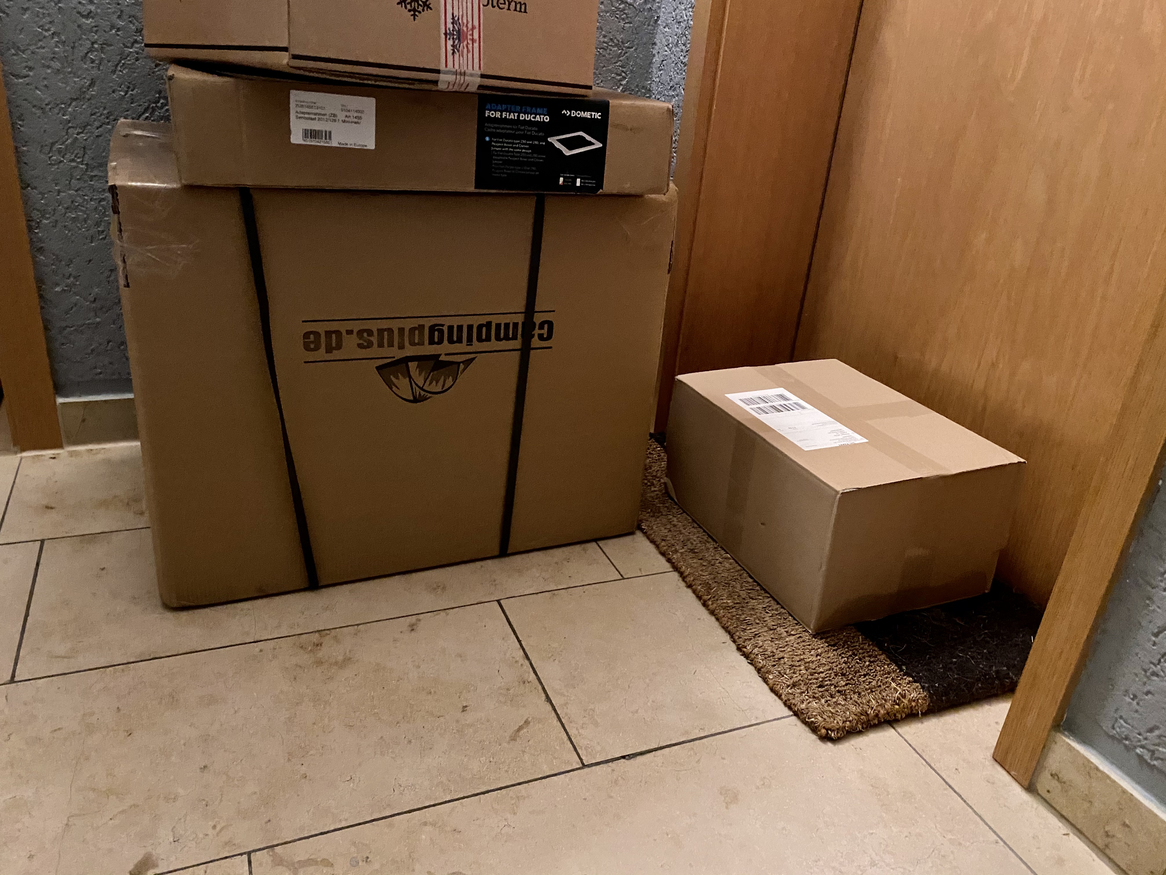 Wir haben so einige Materialien bestellt und passend zur Vorweihnachtszeit viele Pakete geliefert bekommen, darunter die Twin-Kit-Standheizung(en), Dachluke und Akkus.