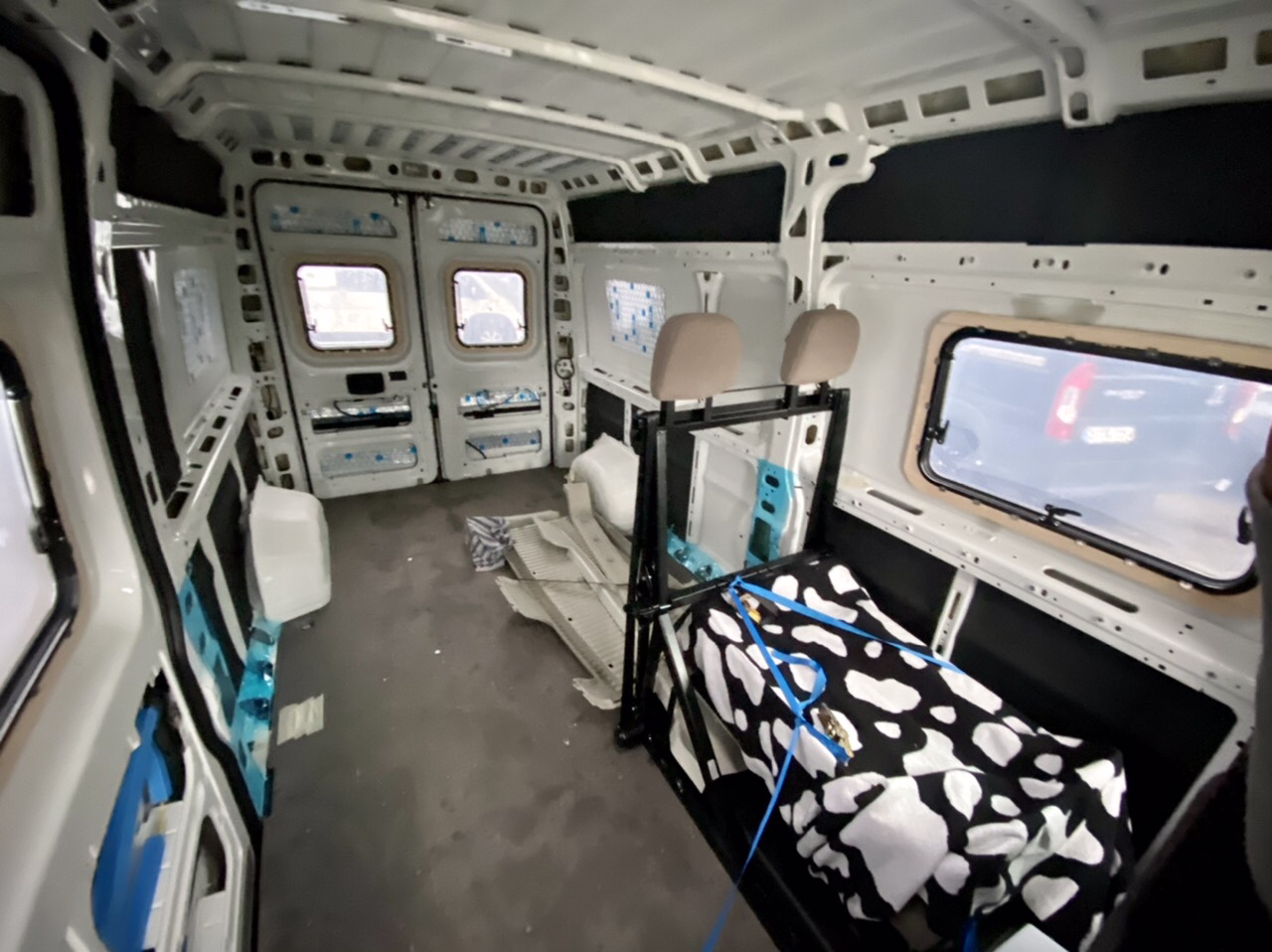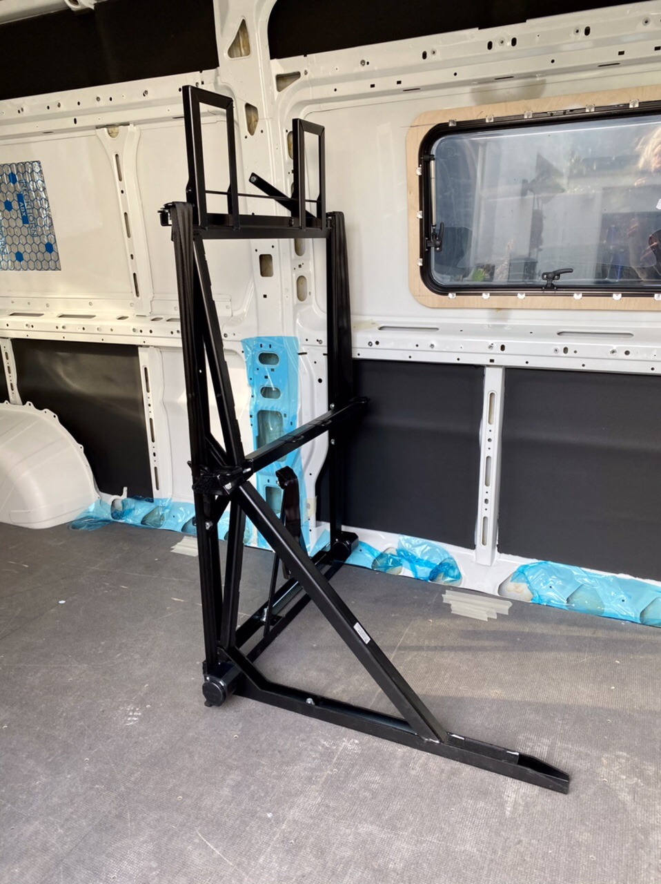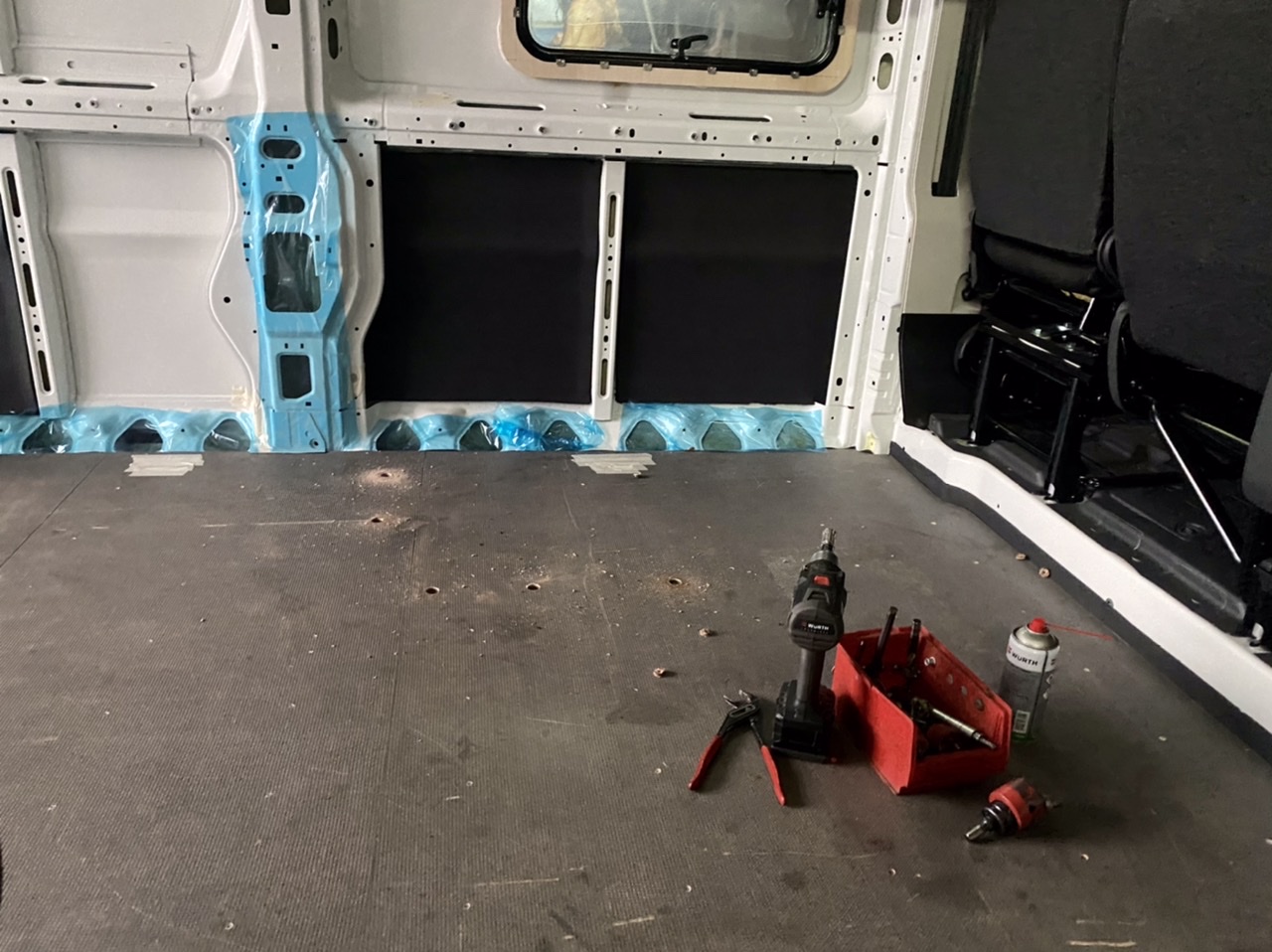 Am Samstag ging es dann auf die erste große Fahrt mit unserem Loki-Van nach Bayern, um dort das erste Teil einbauen zu LASSEN – und zwar den Gurtbock für unsere zukünftige Sitzbank. Wir ließen den Einbau in Zellingen beim routinierten Wohnmobilausbauer durchführen, wo wir auch die vorab bestellten Tanks und Teile für die Innenverkleidung mit auf den verregneten Heimweg nahmen.