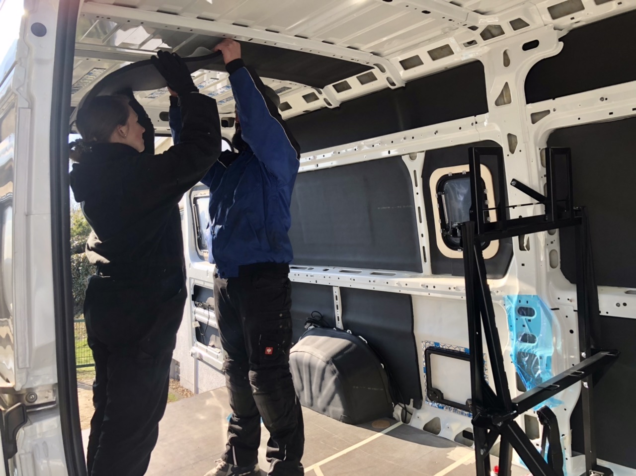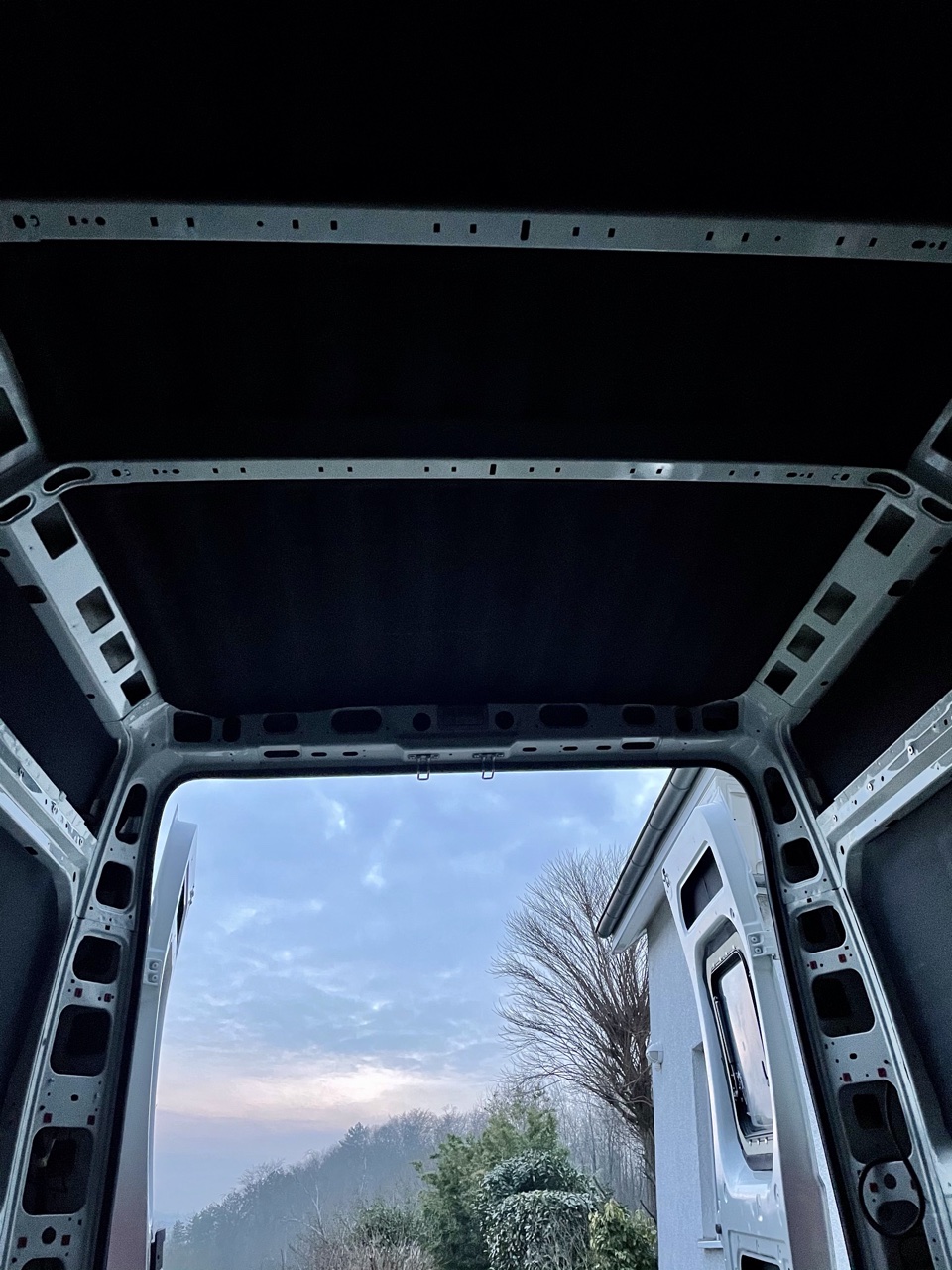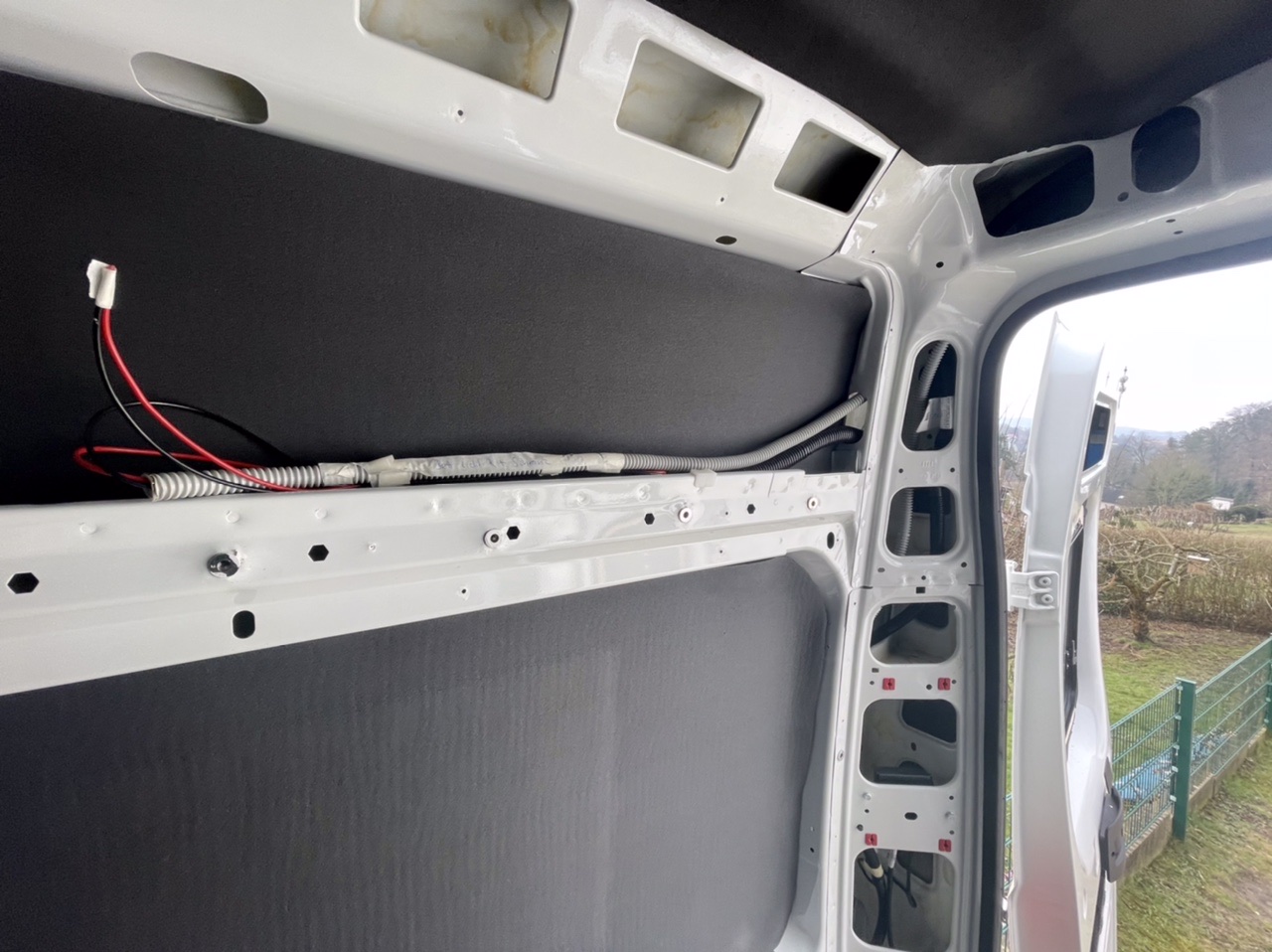 In den letzten Wochen konnten wir endlich ein paar „Meilensteine“ auf dem Selbstausbau – Weg erreichen, vor allem da Philipp momentan frei hat und mehr Zeit in den Van stecken kann. Neben diesen Meilensteinen ist die Dämmung mal wieder weiter voran geschritten. Diese wurde zunächst auf dem Boden vervollständigt und um die Radkästen herum. Dazu haben wir sowohl mit 19mm Armaflex als auch 3mm Tape gearbeitet. Die Decke haben wir hauptsächlich zusammen gedämmt. Zu guter letzt ist nun auch das Dach über der Ablage im Fahrerbereich mit Armaflex beklebt worden, in ähnlicher Puzzle-Arbeit wie bereits in den Türen. So können wir uns dort bald ein Fach für Stauraum schaffen. Einen Tag hat Philipp mit freundschaftlicher Unterstüzung außerdem dafür nutzen können, die Stromkabel schon mal durch den Van bzw. die Holme zu ziehen.