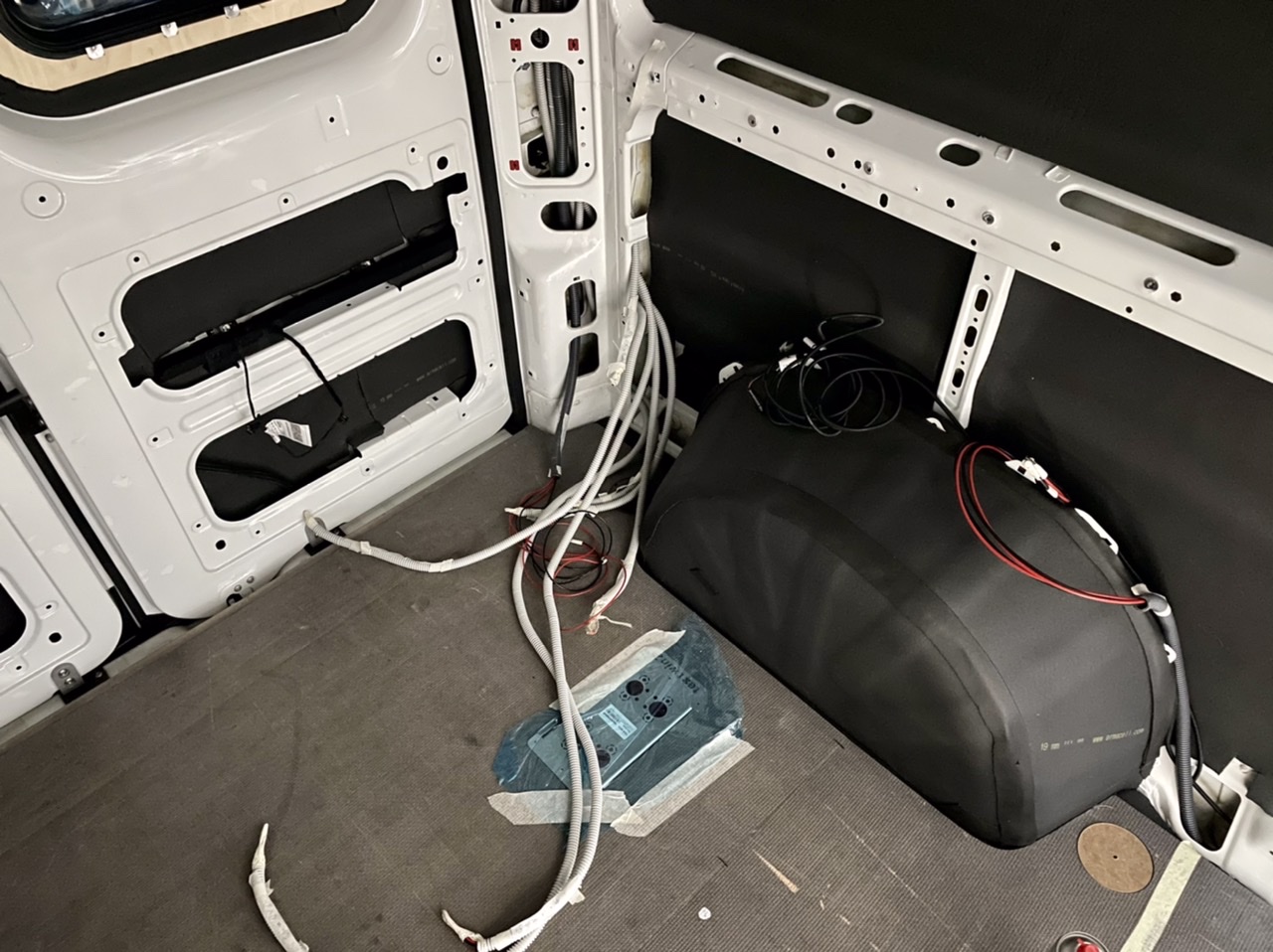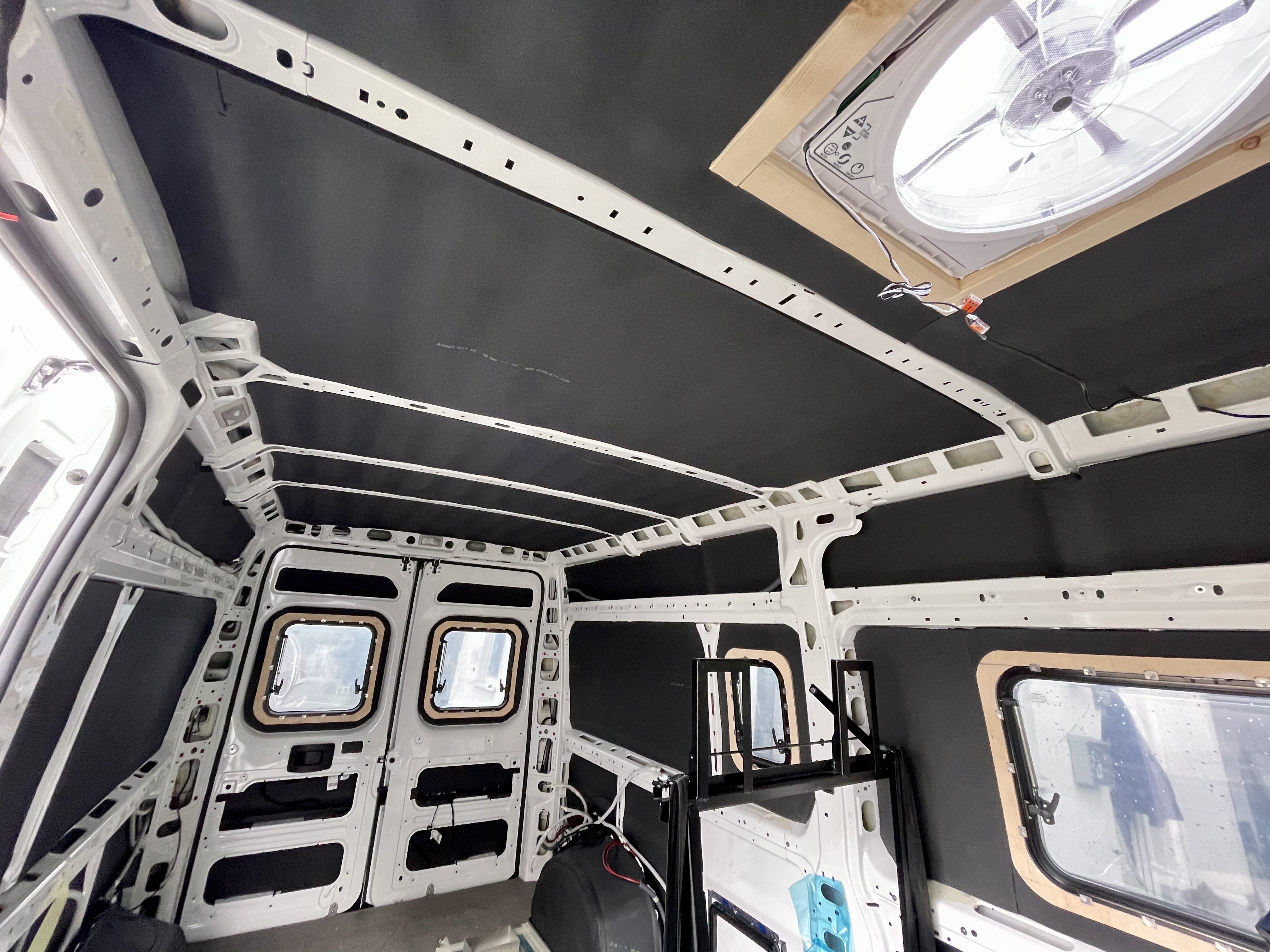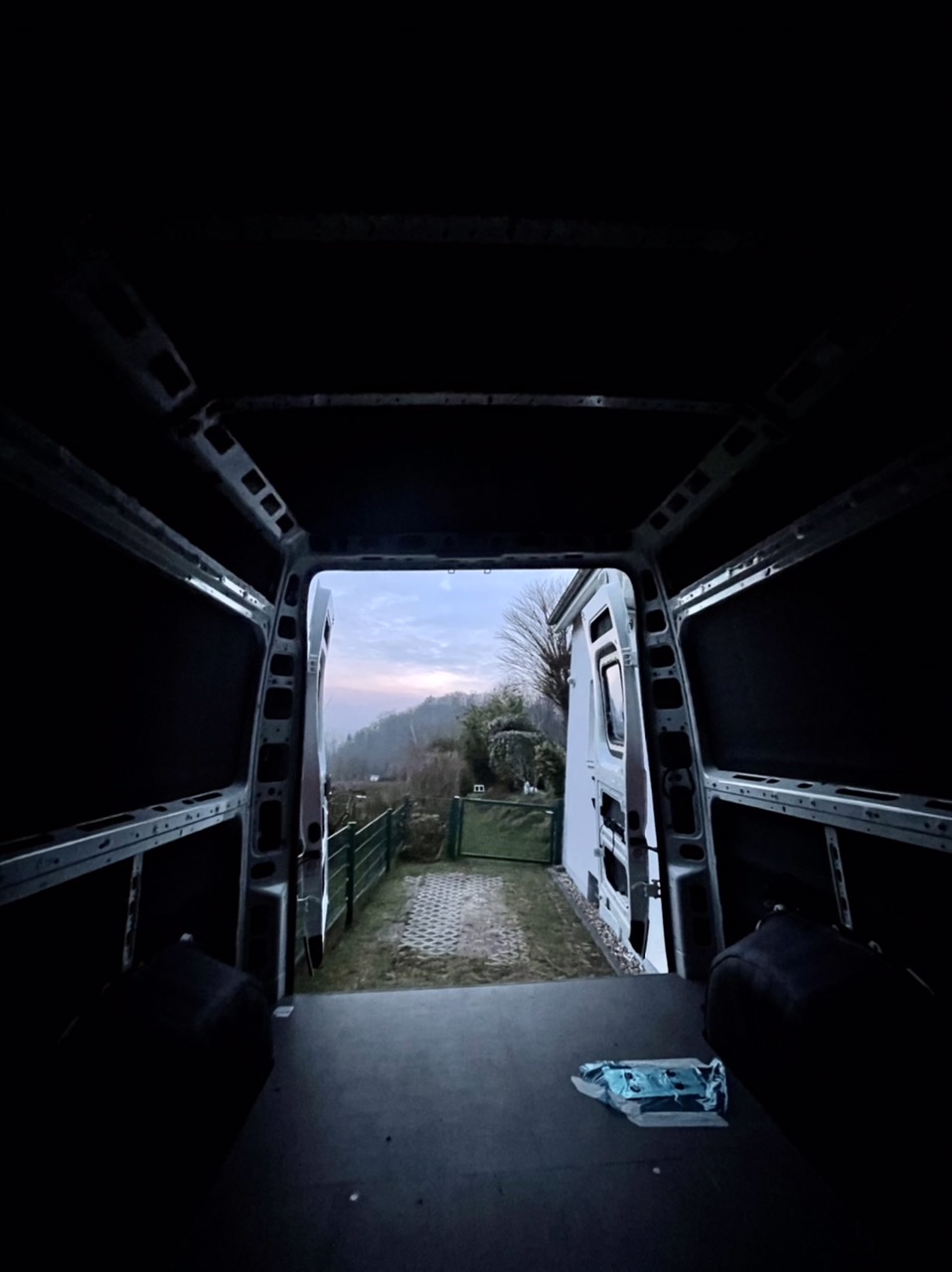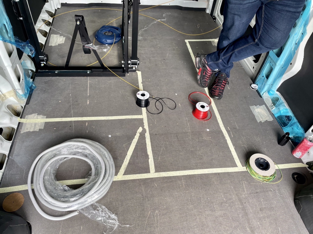 In den letzten Wochen konnten wir endlich ein paar „Meilensteine“ auf dem Selbstausbau – Weg erreichen, vor allem da Philipp momentan frei hat und mehr Zeit in den Van stecken kann. Neben diesen Meilensteinen ist die Dämmung mal wieder weiter voran geschritten. Diese wurde zunächst auf dem Boden vervollständigt und um die Radkästen herum. Dazu haben wir sowohl mit 19mm Armaflex als auch 3mm Tape gearbeitet. Die Decke haben wir hauptsächlich zusammen gedämmt. Zu guter letzt ist nun auch das Dach über der Ablage im Fahrerbereich mit Armaflex beklebt worden, in ähnlicher Puzzle-Arbeit wie bereits in den Türen. So können wir uns dort bald ein Fach für Stauraum schaffen. Einen Tag hat Philipp mit freundschaftlicher Unterstüzung außerdem dafür nutzen können, die Stromkabel schon mal durch den Van bzw. die Holme zu ziehen.