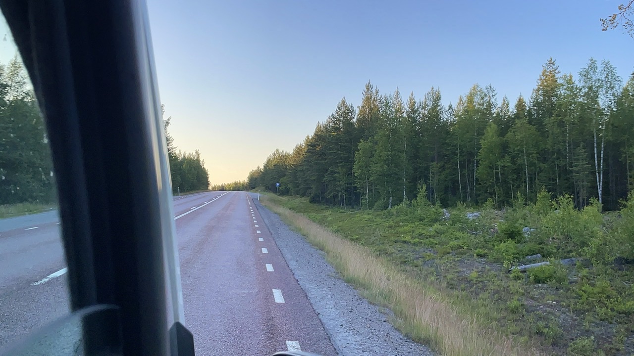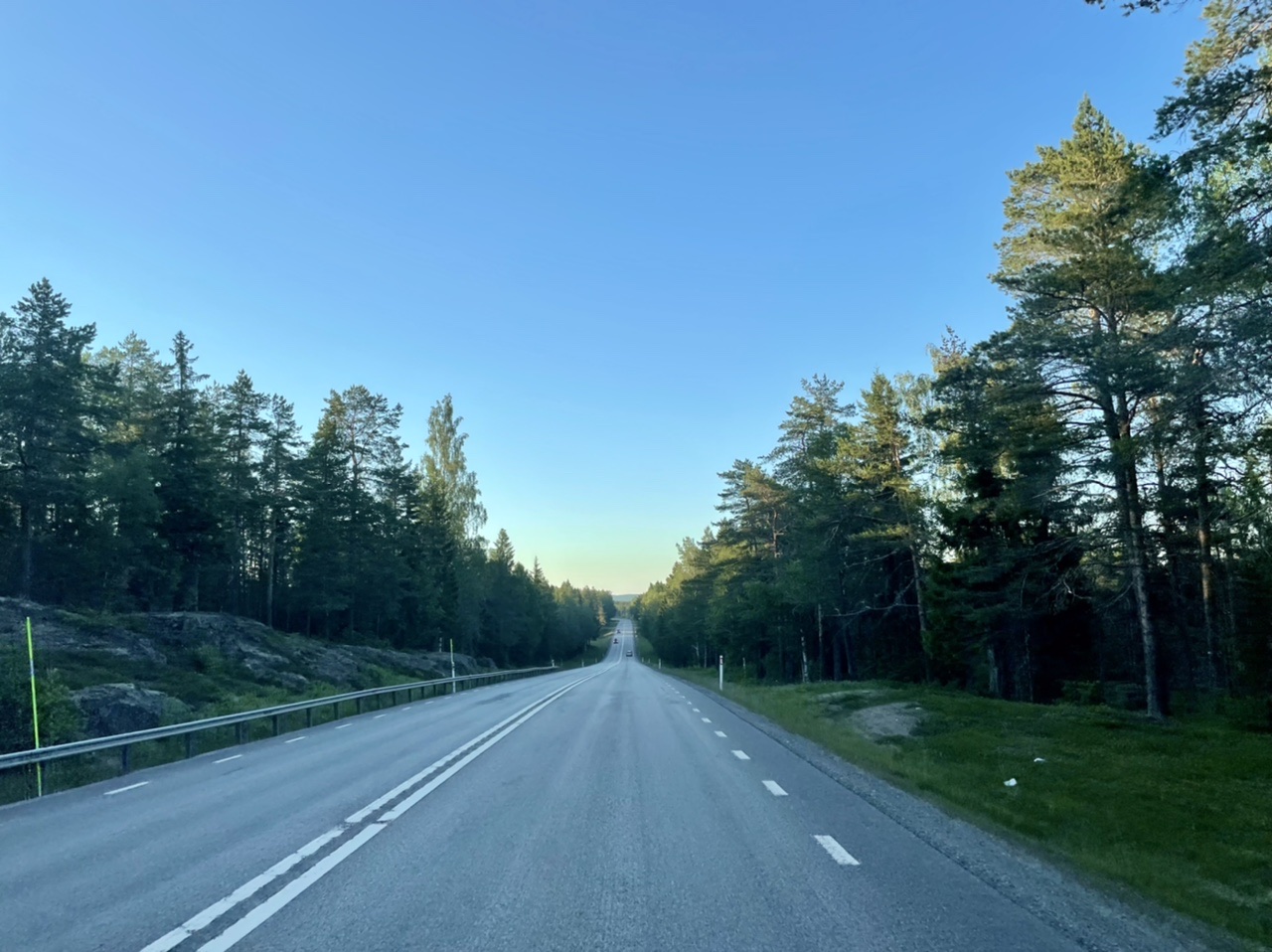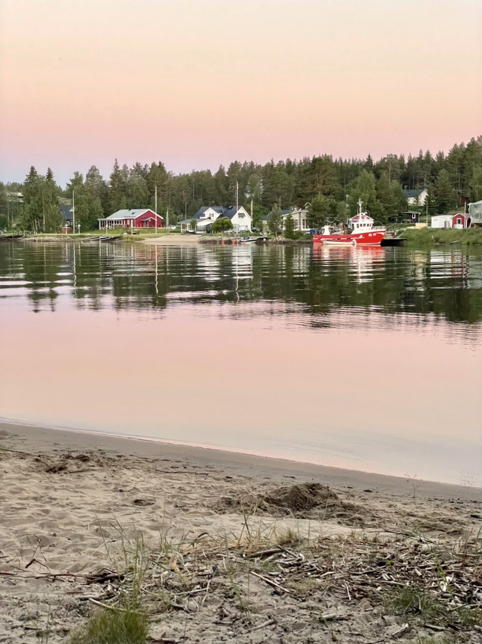 Dieser Plan stand für uns ziemlich schnell fest, um von dort aus flexibel mit der Route umzugehen. Trotzdem begann der Tag nach einer kurzen Nacht relativ gemütlich mit Yoga am Wald, Espresso und Frühstück. Dann ging es auf den Road Trip mit dem LokiVan vorbei an Wäldern und Seen, sich verändernder, felsiger und weitläufiger werdender Umgebung Richtung Norden. Abends haben wir die erste Elchkuh in Schweden am Straßenrand gesehen, spät abends suchten wir uns einen Stellplatz am Pite Havsbad / Yttre Fjärden, wo wir zwischen Ufer und Wald für uns alleine standen. Bevor es ins Bett ging, wurde noch gegrillt unter dem wunderschön gefärbten und ewig hell bleibenden Himmel.