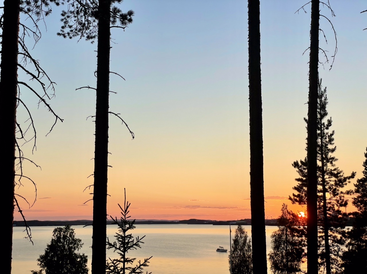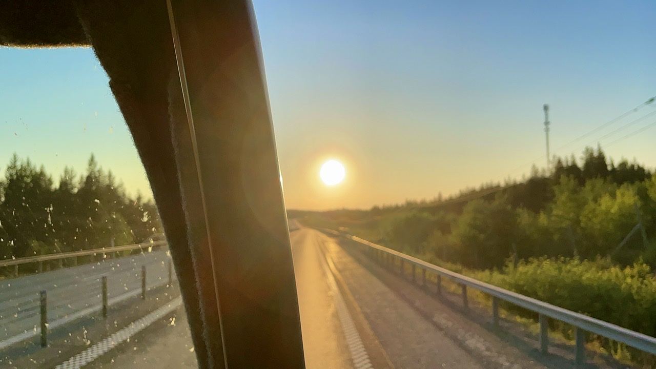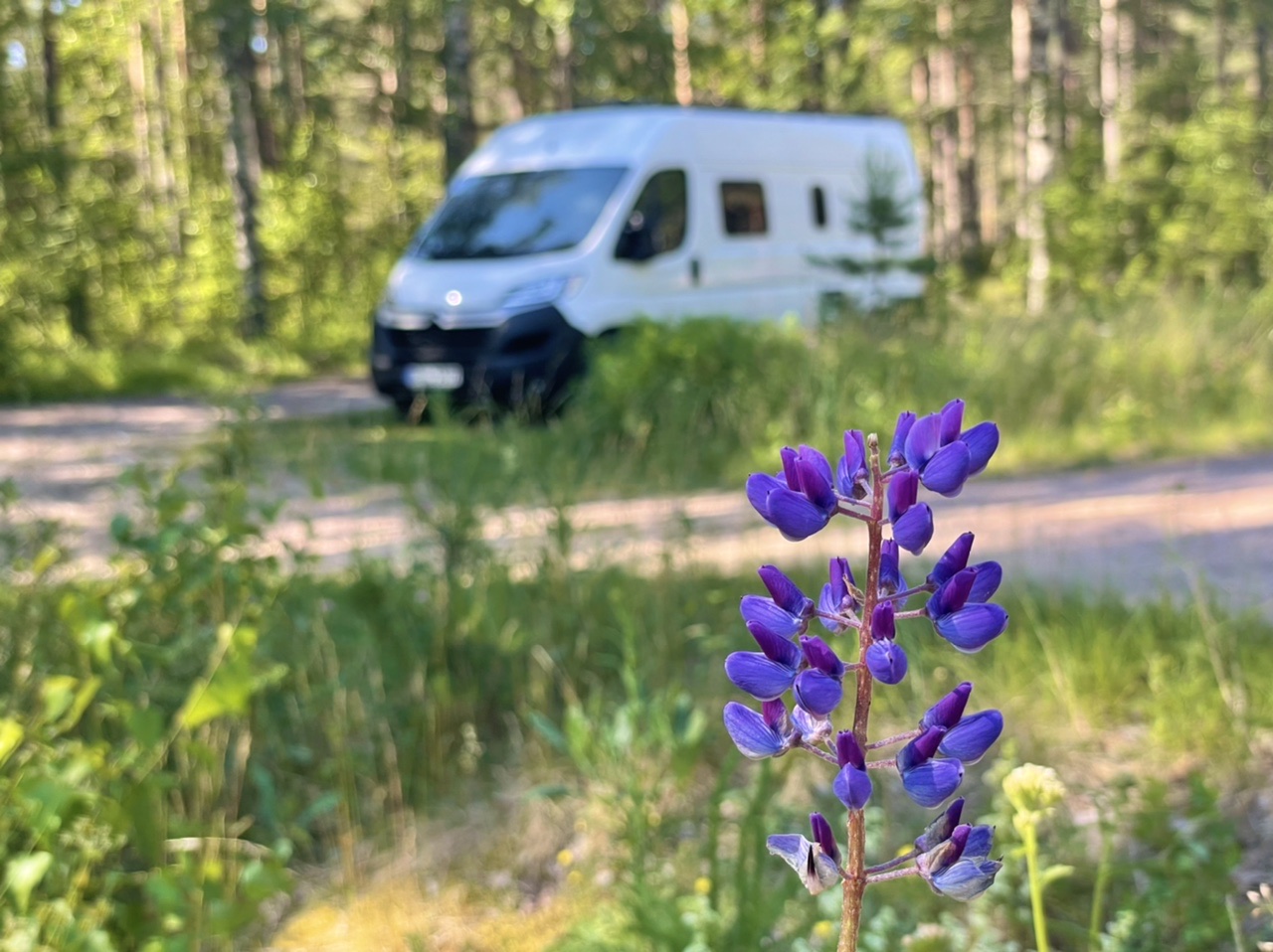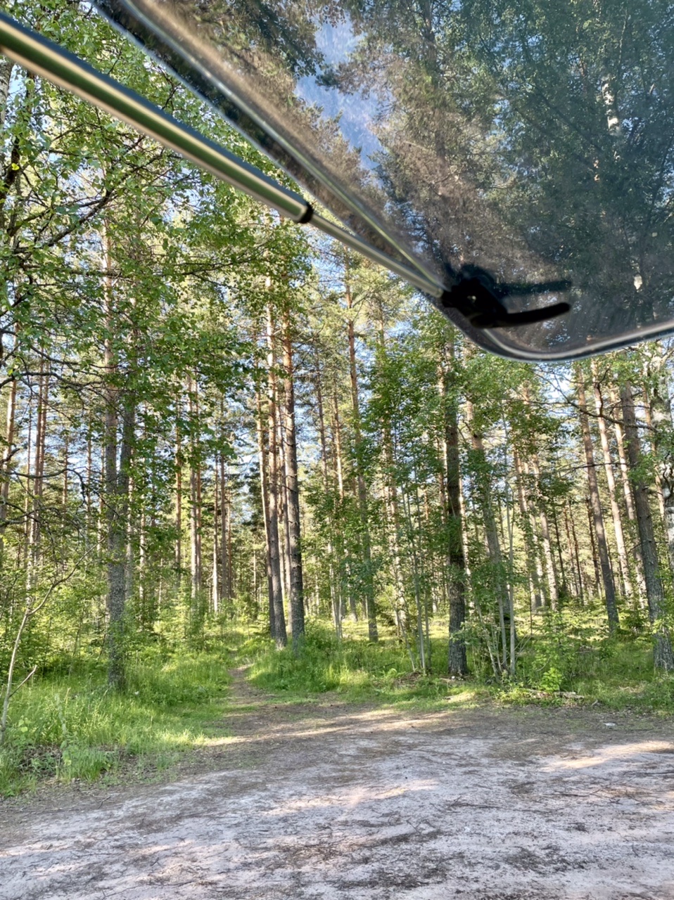 Dieser Plan stand für uns ziemlich schnell fest, um von dort aus flexibel mit der Route umzugehen. Trotzdem begann der Tag nach einer kurzen Nacht relativ gemütlich mit Yoga am Wald, Espresso und Frühstück. Dann ging es auf den Road Trip mit dem LokiVan vorbei an Wäldern und Seen, sich verändernder, felsiger und weitläufiger werdender Umgebung Richtung Norden. Abends haben wir die erste Elchkuh in Schweden am Straßenrand gesehen, spät abends suchten wir uns einen Stellplatz am Pite Havsbad / Yttre Fjärden, wo wir zwischen Ufer und Wald für uns alleine standen. Bevor es ins Bett ging, wurde noch gegrillt unter dem wunderschön gefärbten und ewig hell bleibenden Himmel.
