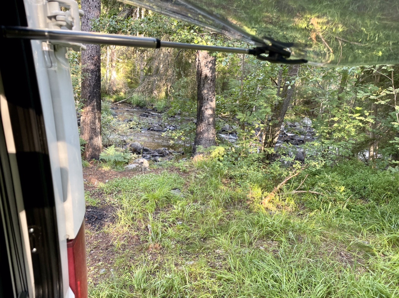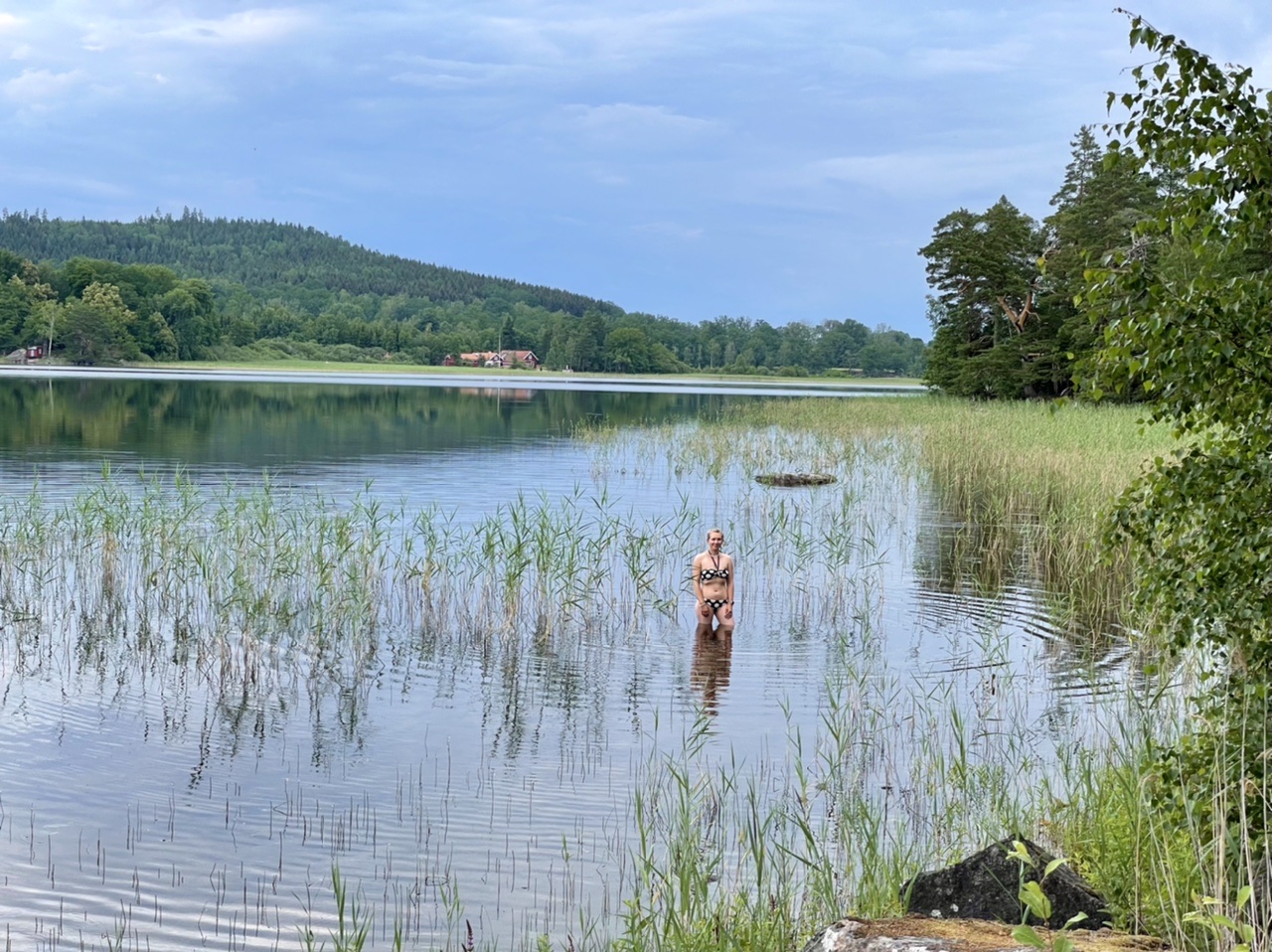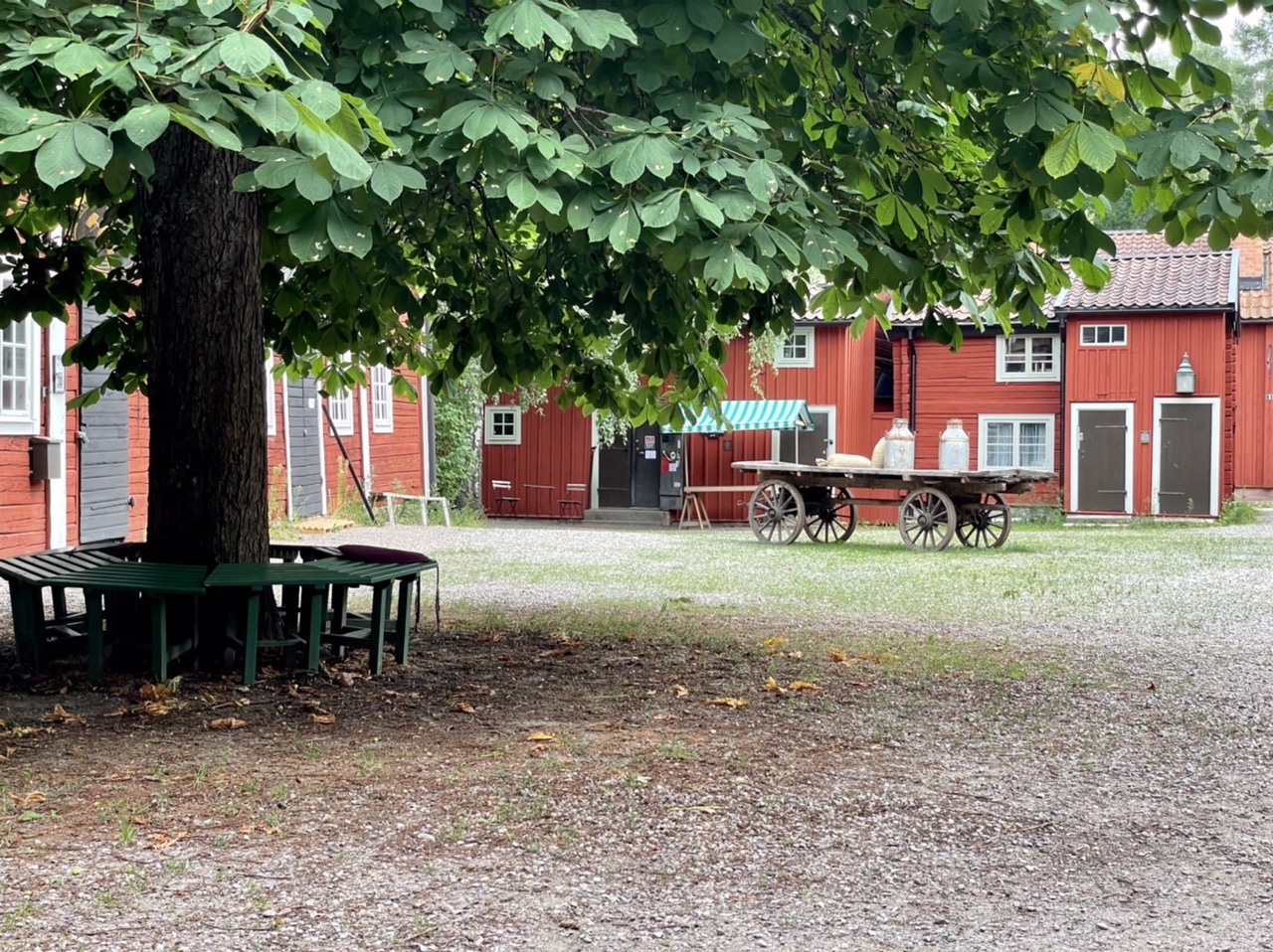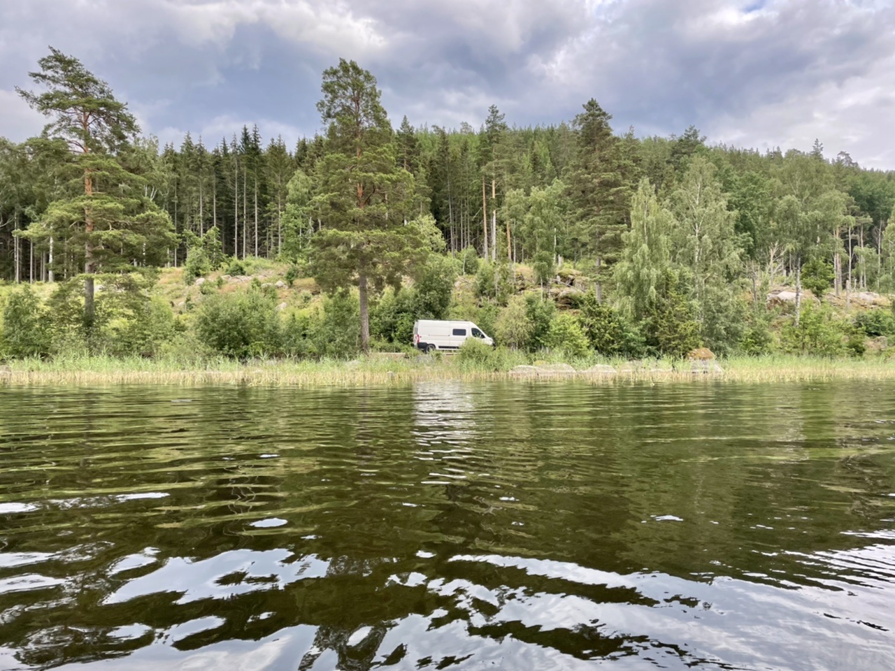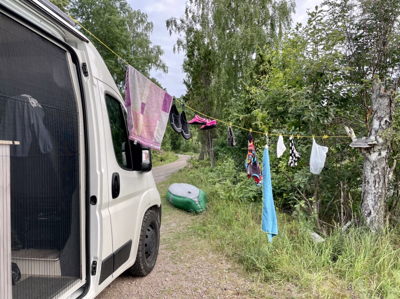 Nach einer kurzen Nacht starteten wir unseren Tag mit Espresso und Yoga, bevor wir zusammen packten und an der Cirkle K in Gävle Kaffee & Brötchen holten. Dann fuhren wir zu „Naturkompaniet“ um uns nach einigen Tagen Bedenkzeit doch endlich die gewünschte Axt zu kaufen (handgemacht in Schweden). Anschließend ging es nach einem kurzen Stop an der Entsorgungsstation auf eine lange Fahrt bei Sonne und 30 Grad über Landstraße und Autobahn. Nachmittags machten wir einen kleinen Bummel durch das Freilichtmuseum Gamla Linköping und waren einkaufen. Am Abend fanden wir schließlich einen Stellplatz direkt am Nedre Fölingen mit Blick auf den See im Sonnenuntergang. Es ging noch auf eine letzte Kajak-Runde in Schweden und kurz ins angenehm  warme Wasser. Für die anstehende Heimreise wurde das Boot von uns wieder zusammen gefaltet und in der Heckgarage verstaut. In der untergehenden Sonne konnten wir noch lange gemütlich sitzen und grillen, bevor es spät und müde, aber im Dunkeln ins Bett im LokiVan ging.