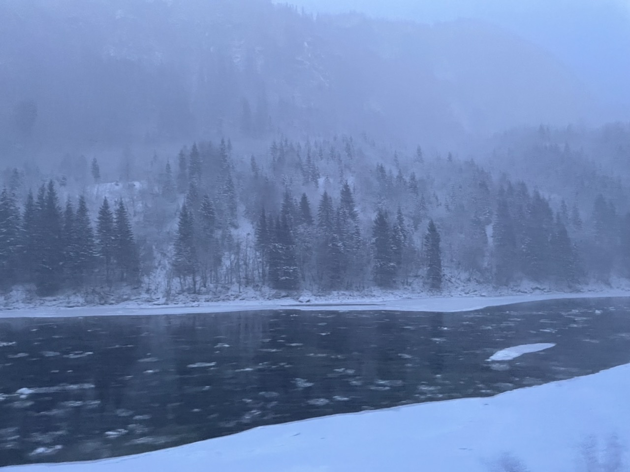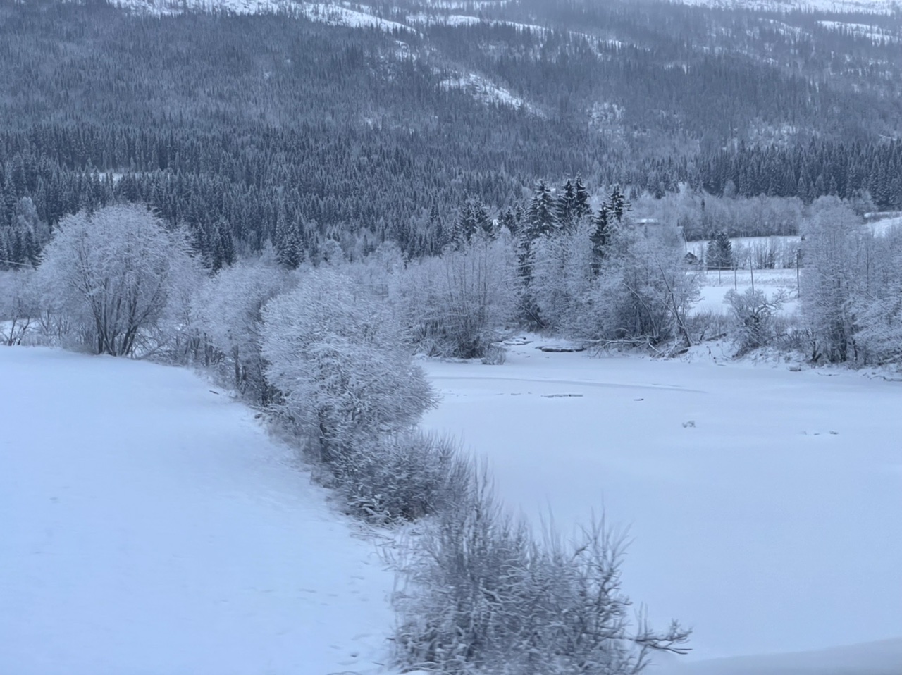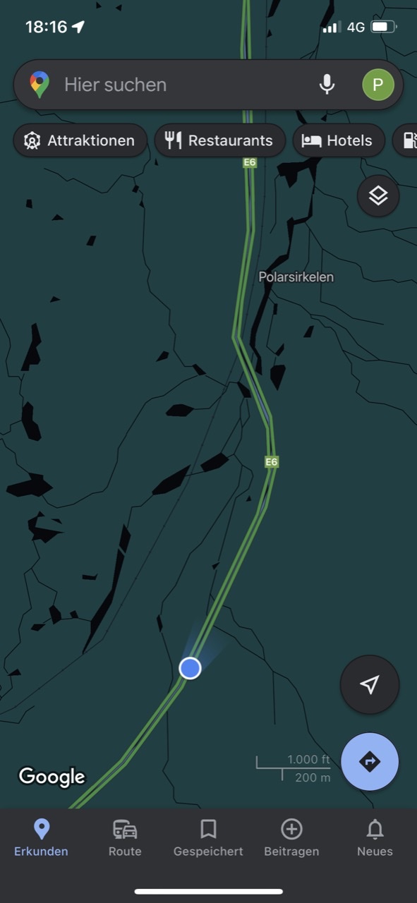 Nach einer kurzen und kuscheligen Nacht im LokiVan haben wir leider feststellen müssen, dass unsere Wasserleitungen eingefroren waren. Also fiel das Frühstück recht kurz aus und wir suchten uns zunächst eine Tankstelle und Einkaufsmöglichkeiten. Diese fanden wir nach einer Fahrt vorbei an kleinen Rentier-Herden, Wäldern, Flüssen und Bergen bedeckt mit Eis (Zapfen & Schollen) und hohem Schnee in Mosjøen / Nyrud. Mit einem dort erworbenen Reisefön tauten wir auf dem Parkplatz die Wasserleitungen auf. Bei der Weiterfahrt fing es schon an, dunkel zu werden. Wir fuhren vorbei am völlig zugeschneiten Arctic Circle Center am Polarkreis, an einigen Elchen (zum Glück in einiger Entfernung von der Fahrbahn) bis zum Parkplatz Bonå Parking zwischen Aspfjord und Sørfjord. Dort wurde nochmals an der Sicherung und der Verkabelung des Zigarettenanzünders gebastelt, bevor es wieder spät ins warme Bett ging.