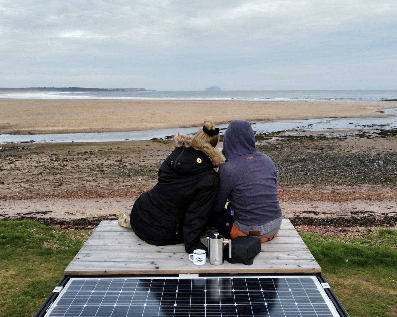 Auch der erste Morgen in Schottland begrüßte uns mit Sonnenschein, so dass wir nicht nur den Blick vom Bett aus aufs Meer genießen konnten, sondern auch unser Frühstück auf der Dachterrasse.