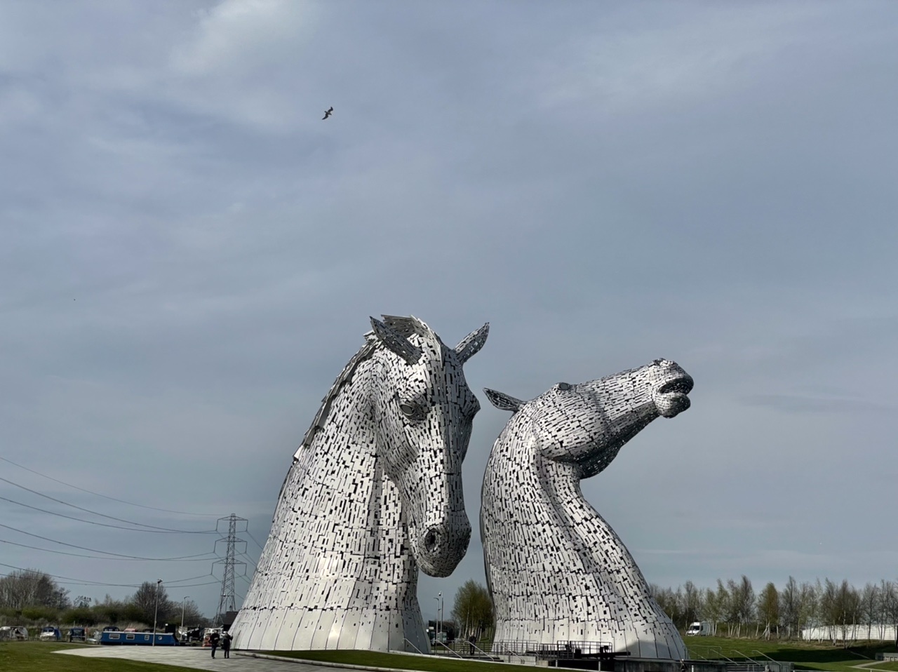 Unsere Fahrt führte uns heute zunächst nach Edinburgh. Wir fanden einen Parkplatz unterhalb des Schlosses und schlenderten von dort aus durch die Altstadt hoch zum Edinburgh Castle. Auf dem Weg gab es noch ein „award winning“ Eis und es setzte (wie erwartet) leichter Regen ein. Davon ab waren es für unser Gefühl recht viele Menschen und wenig Abstand, auch wenn es ohne die Pandemie sicherlich voller gewesen wäre. Wir fuhren weiter und kauften auf dem Weg ein paar Lebensmittel ein. Unser nächster Halt bei „the Kelpies“ fand bei starkem Wind, aber auch Sonnenschein statt. Von Parkplatz aus machten wir also einen kleinen Spaziergang zu den Skulpturen der Wassergeister in Pferdegestalt. Einen weiteren kurzen Stop machten wir an Wallace Monument, wo wir allerdings kurz vor Ende der Öffnungszeiten ankamen. Den steilen Weg nach oben sparten wir uns und fuhren weiter. Abends