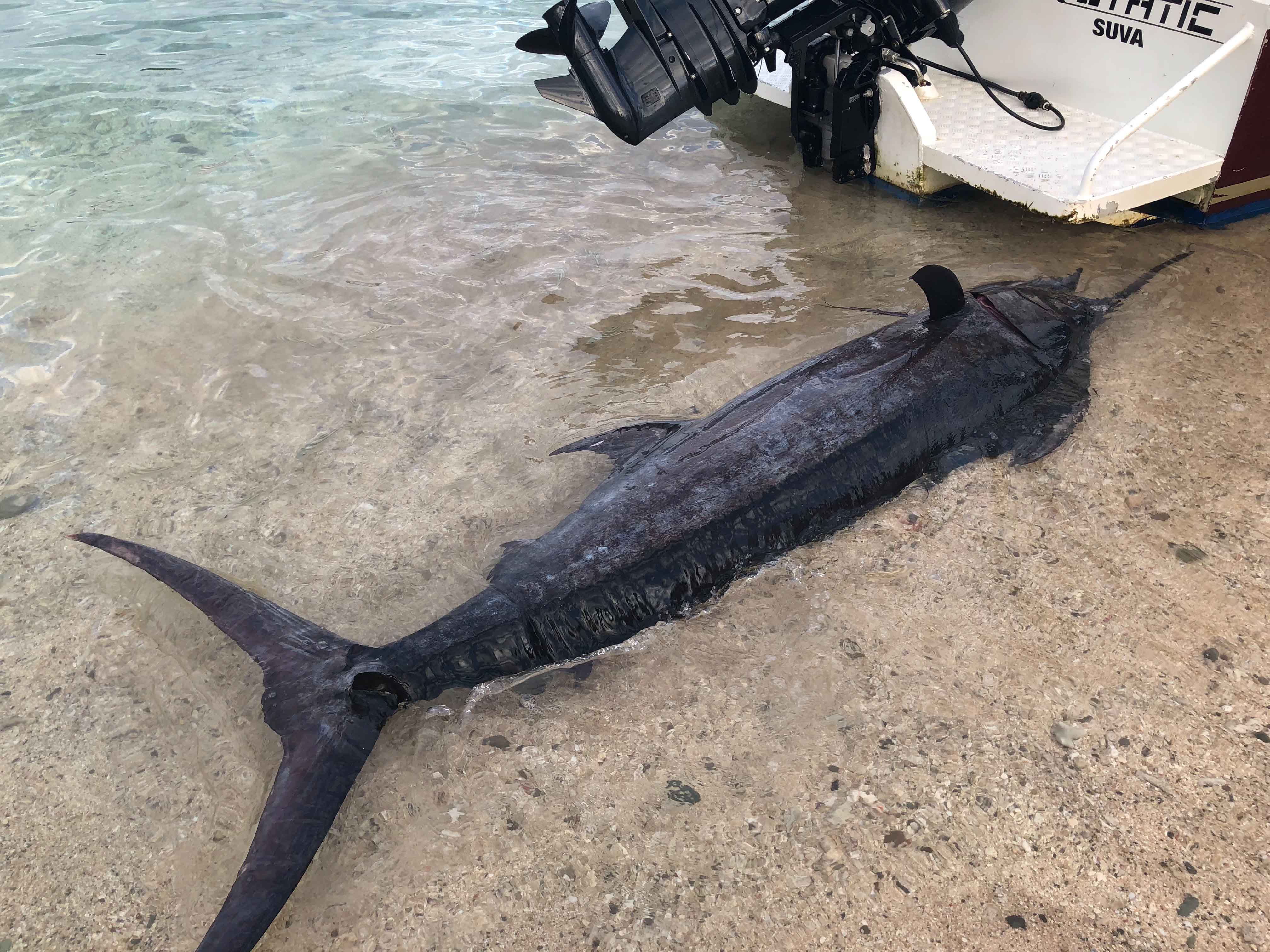 Nachdem es gestern der Gelbflossen-Thunfisch war, ist neben der “üblichen” Ausbeute heute ein Marlin an den Haken gegangen. Er war so groß und schwer, dass er von sechs Männern getragen wurde.
