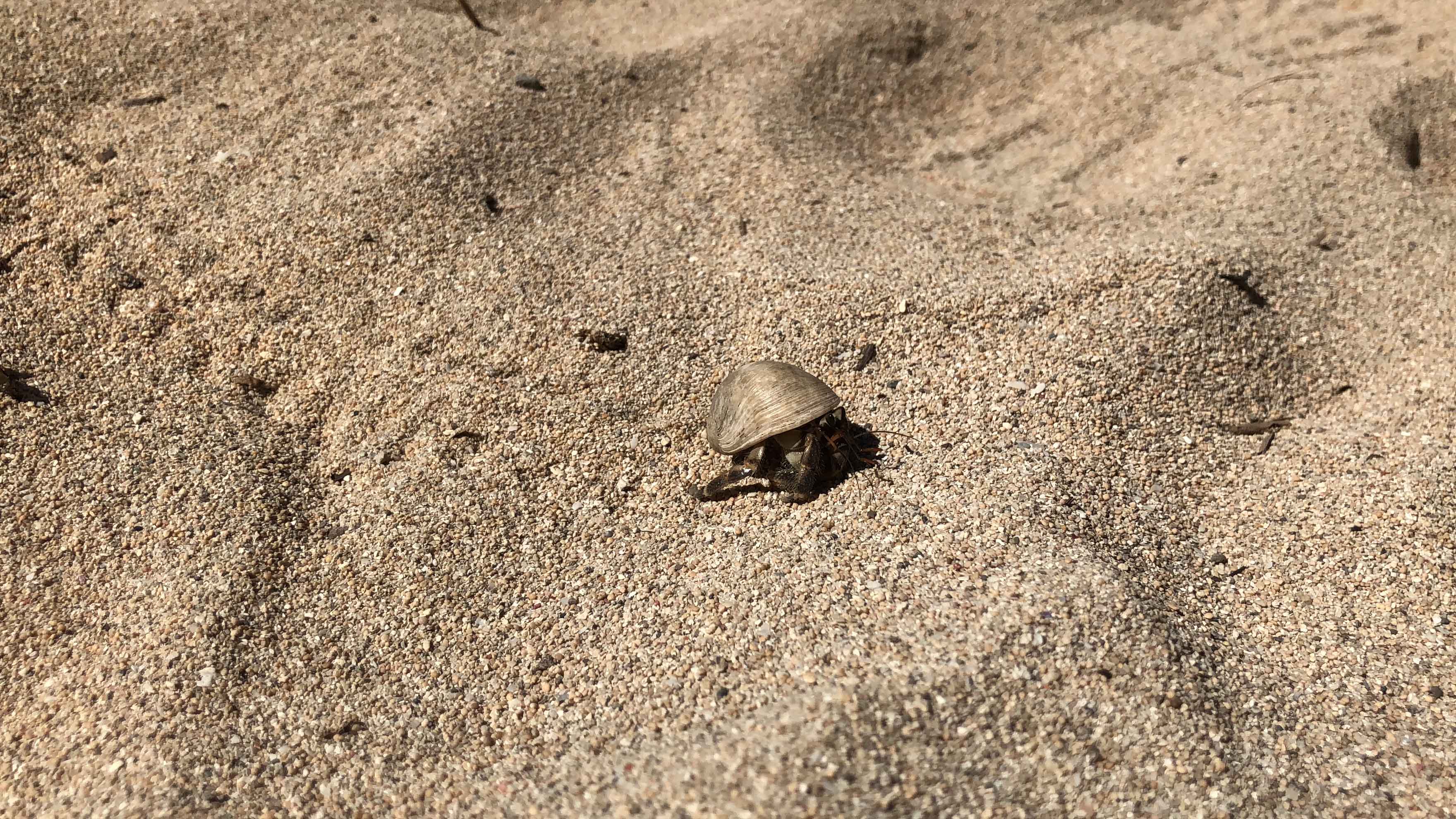 Zum Glück haben wir heute am Strand Mr. Crabs getroffen, der sich in den Schatten verzogen hat.